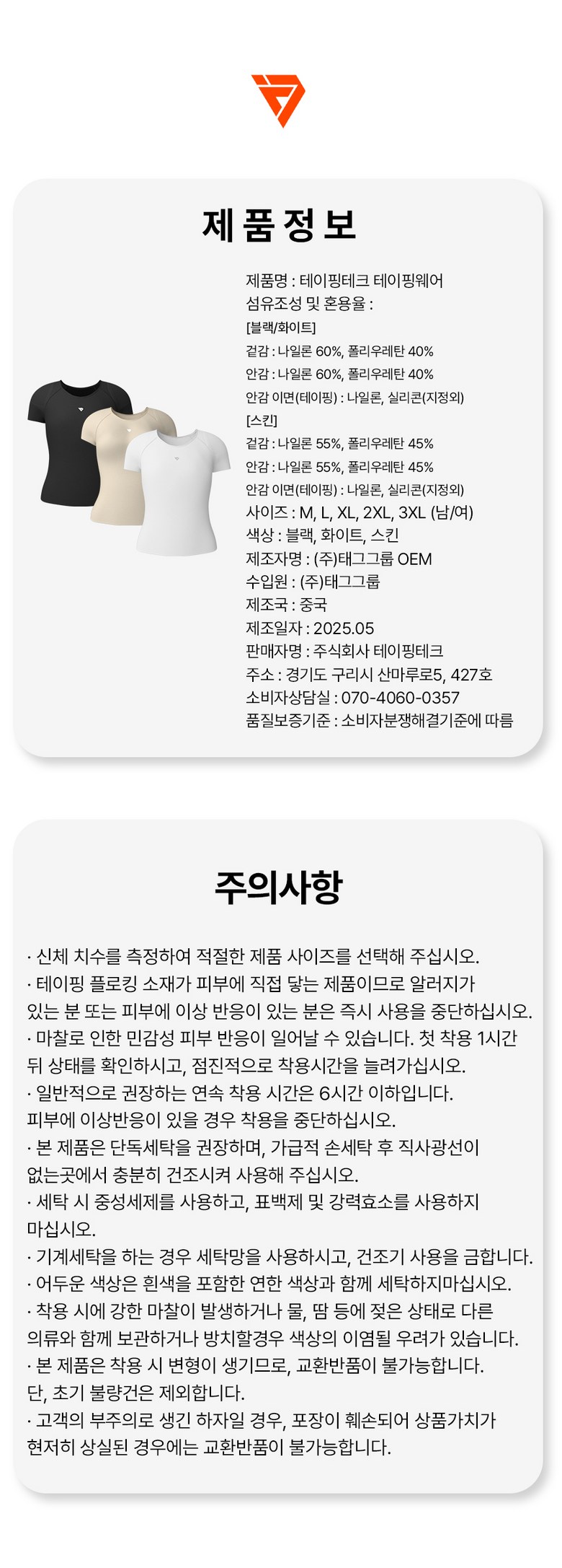 | 치수 | 44(M), 55(L), 66(XL), 77(2XL), 88(3XL) | 제조자(수입자) | (주)태그그룹OEM/(주)태그그룹 |