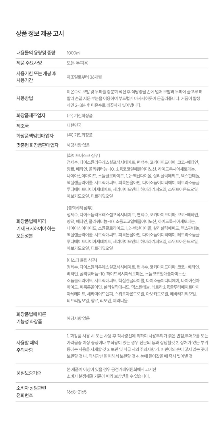 | 화장품제조업자, 화장품책임판매업자 및 맞춤형화장품판매업자 | 컨텐츠 참조 | 제조국 | 컨텐츠 참조 |