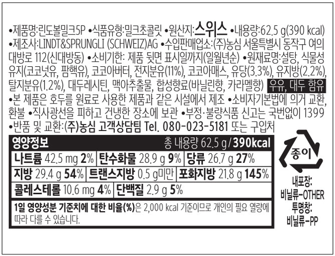 | 포장단위별 내용물의 용량(중량), 수량 | 62.5g x 2개 | 원재료명 및 함량 | 컨텐츠 참조 |