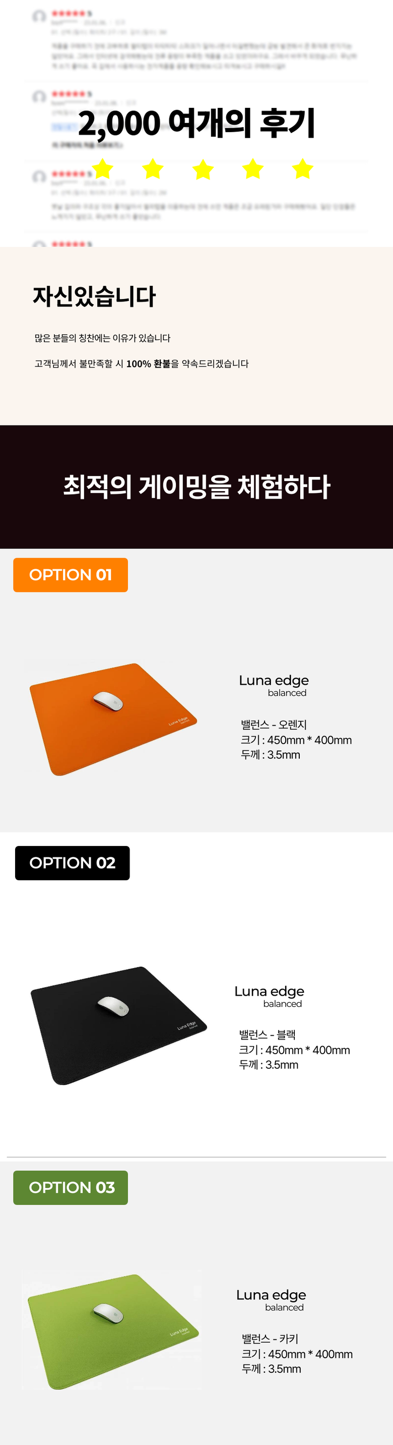 - 마우스패드 종류: 게이밍용(장패드)