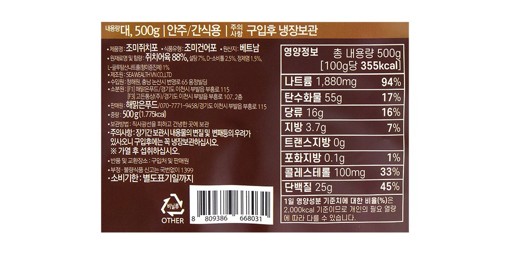 - 보관방법: 냉장보관