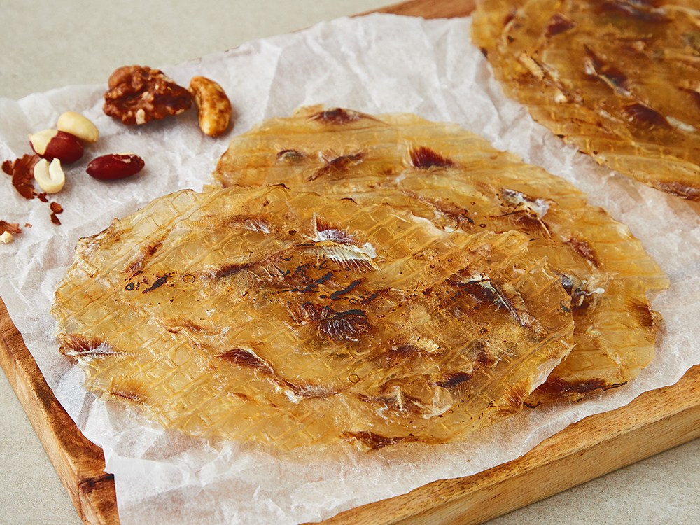 건어물 안주의 대명사, 쥐치포입니다. 쥐치의 고소하고 깊은 풍미를 살리고, 짭조름한 조미를 더했어요. 적당히 두툼하고 쫄깃합니다. 프라이팬에 살짝 굽거나, 전자레인지에 잠시 돌려주면 따끈따끈하고 맛있는 쥐치포를 즐길 수 있답니다.