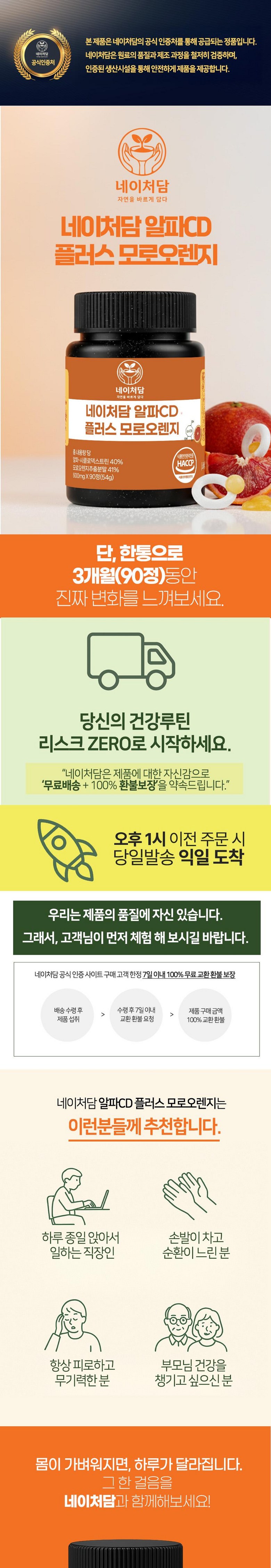 네이처담 대용량 알파CD 플러스 모로오렌지 100% 정품 알파씨디 알파시클로덱스트린 식약처인증 Haccp, 90정, 4개