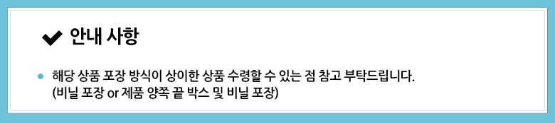 - ㆍ교환/반품에 관한 일반적인 사항은 판매자가 제시사항보다 관계법령이 우선합니다.