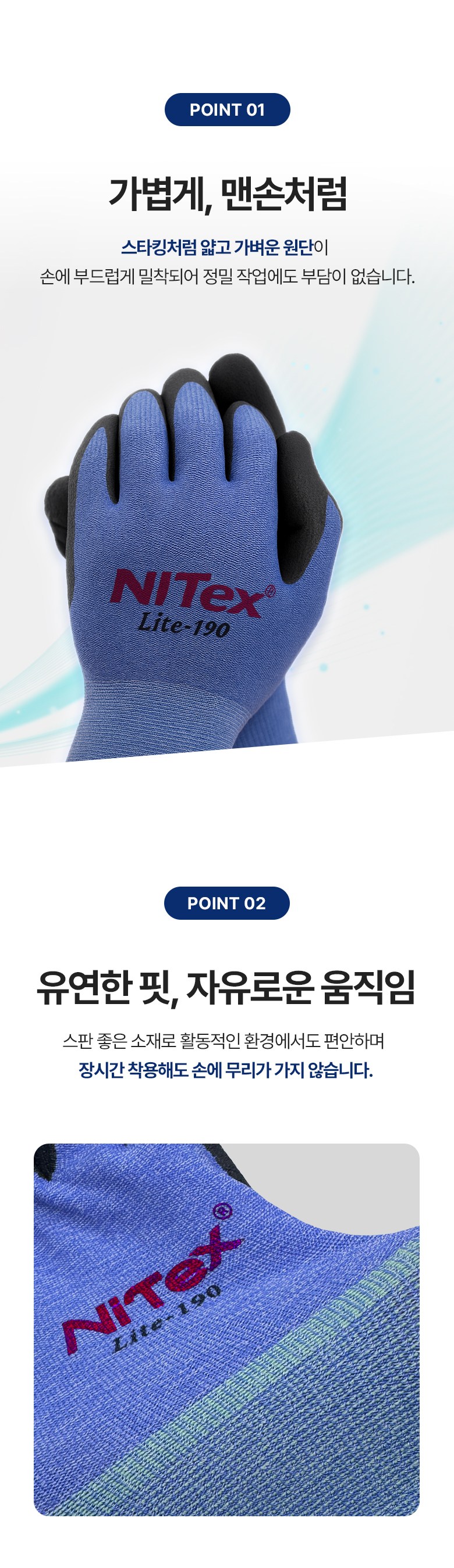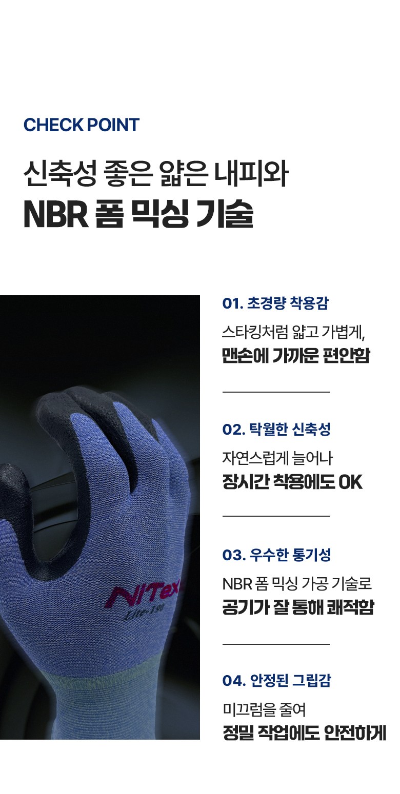 나이텍스 초경량 스타킹 NBR 폼 작업용 장갑 양손착용 세트 S LITE-190