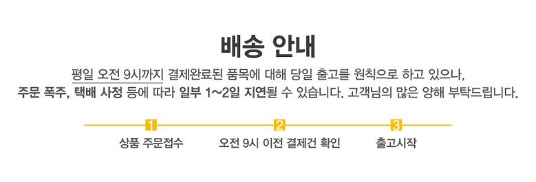 - ㆍ모니터 해상도의 차이로 인해 색상이나 이미지가 실제와 달라, 고객이 단순 변심으로 교환/반품을 무료로 요청하는 경우