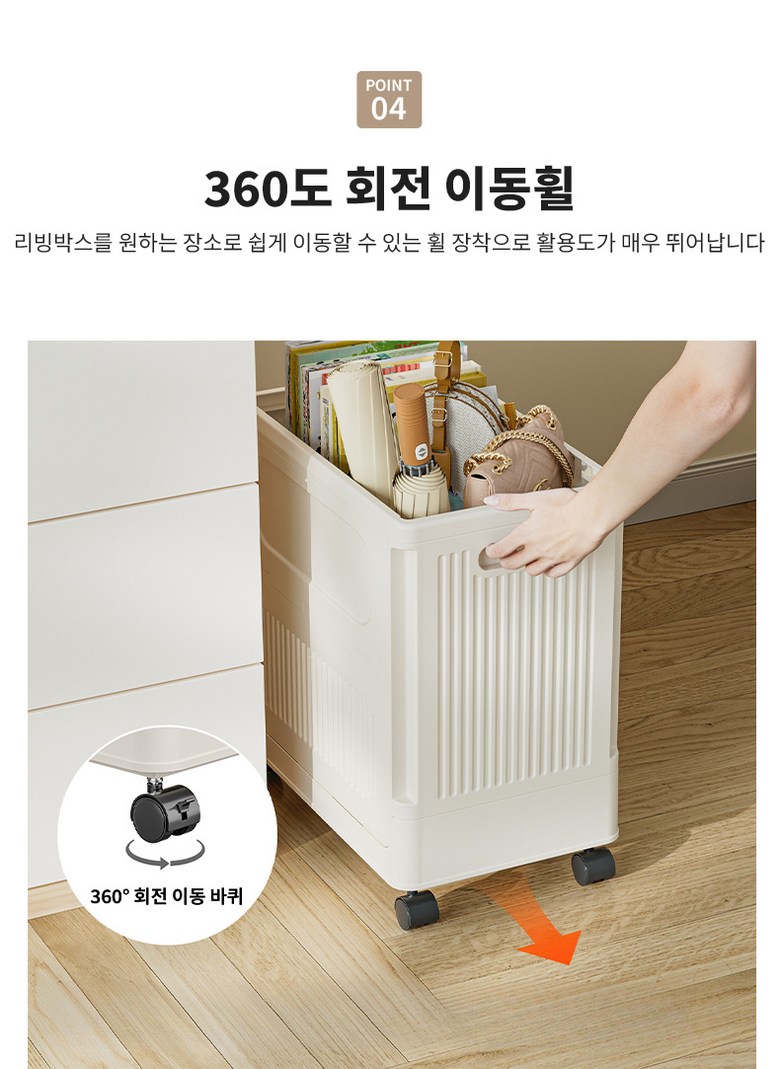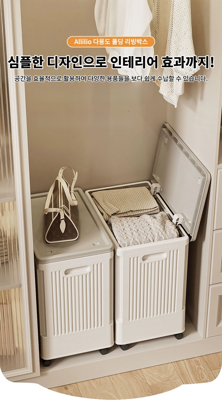 Allilio 대용량 접이식 리빙박스 다용도 이동식 옷정리 리빙박스 책상아래 이동식 수납박스 장난감 정리함
