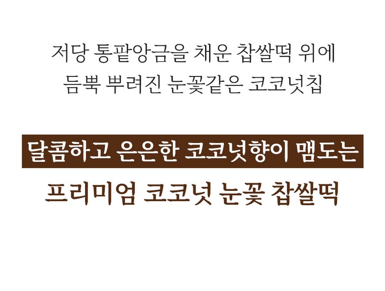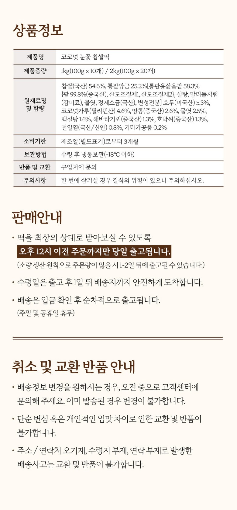| 제품명 | 코코넛 눈꽃 찹쌀떡 | 식품의 유형 | 떡류 |