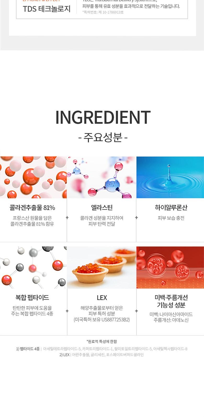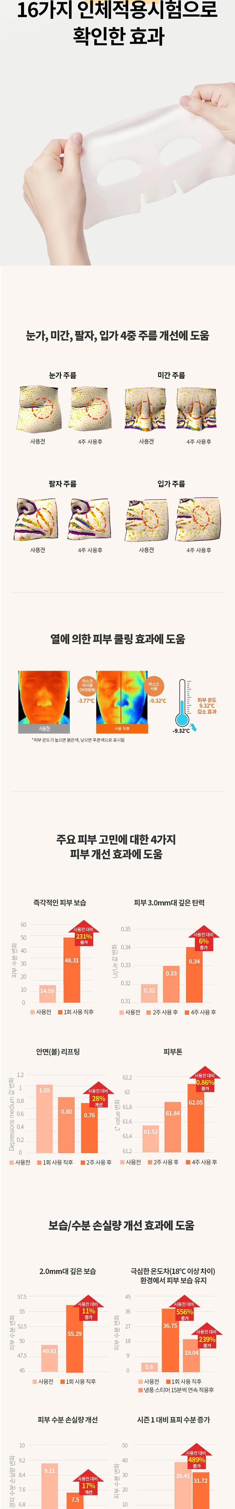 | 사용기한 또는 개봉 후 사용기간 | 24개월 | 사용방법 | ① 세안 후 스킨으로 피부결을 정돈해 줍니다. ② 본 제품을 개봉하여 눈과 입의 위치를 잘 맞춘 다음 피부에 잘 밀착되도록 부착시킵니다. ③ 약 10~20분 후 마스크를 제거하고 피부 위에 남은 내용물을 가볍게 손으로 두드려 흡수시킵니다. ※사용전에 반드시 사용법 및 사용시의 주의사항을 숙지 하신 후 사용하십시오 |