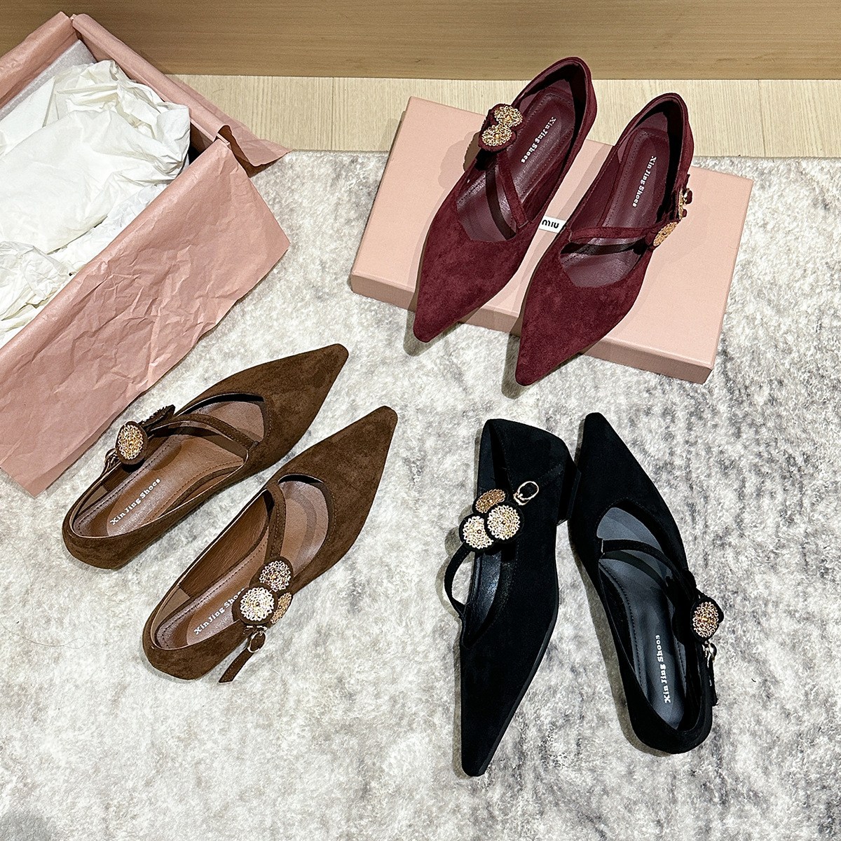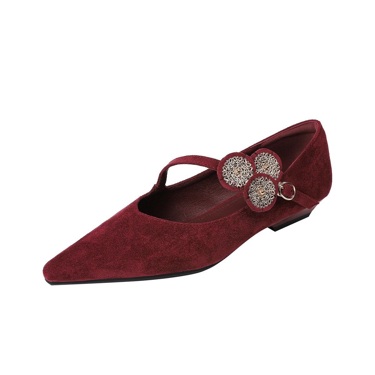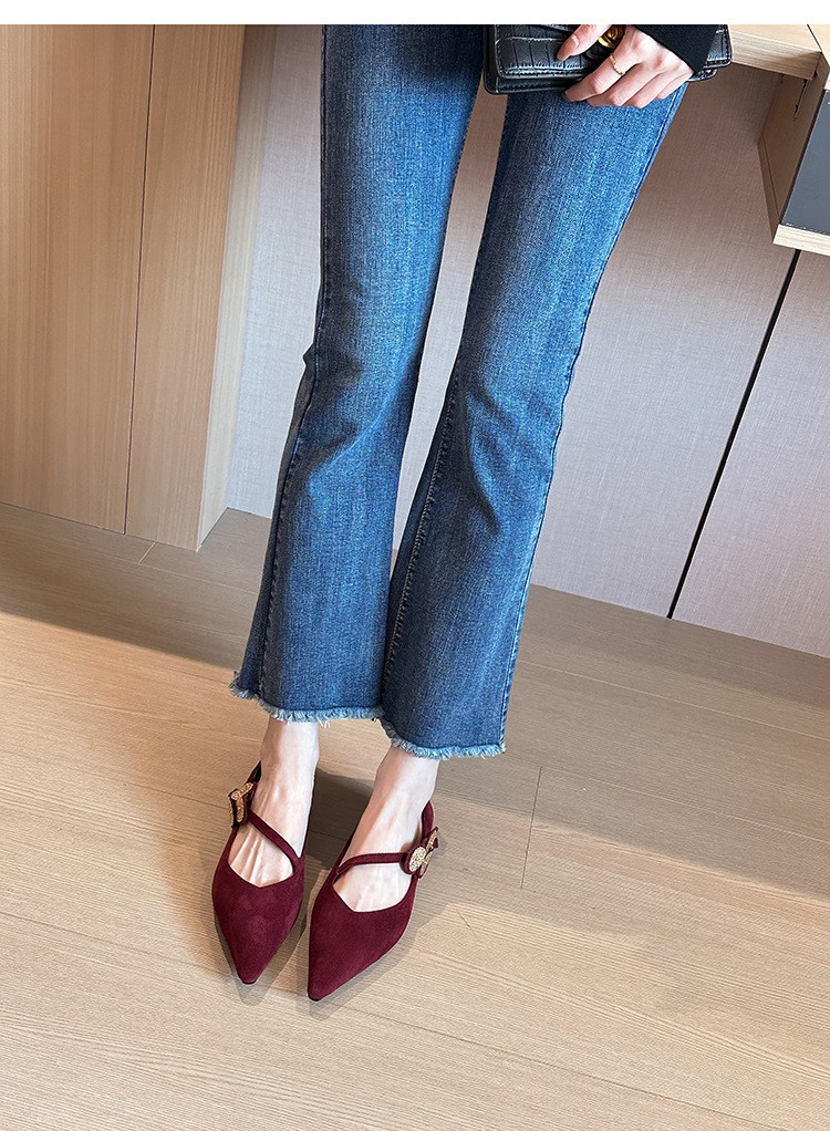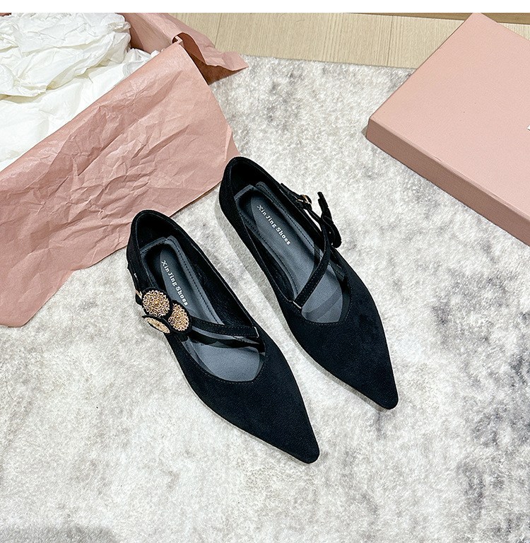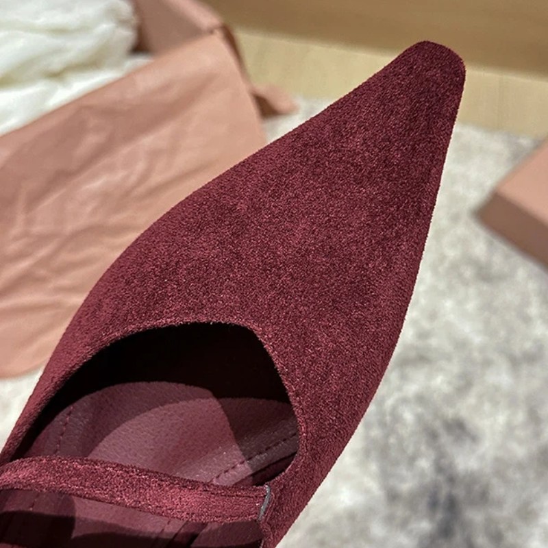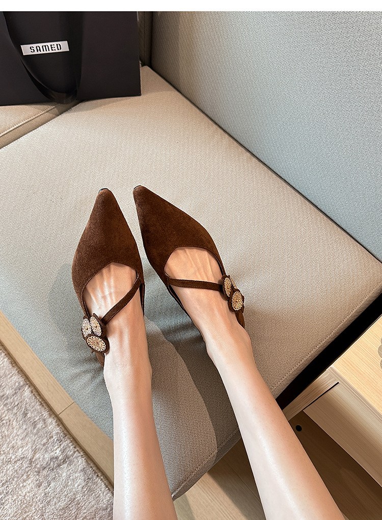 투니스 여성 스타일리시 퍼 싱글 스트랩 스틸레토 로우힐 슈즈 2cm