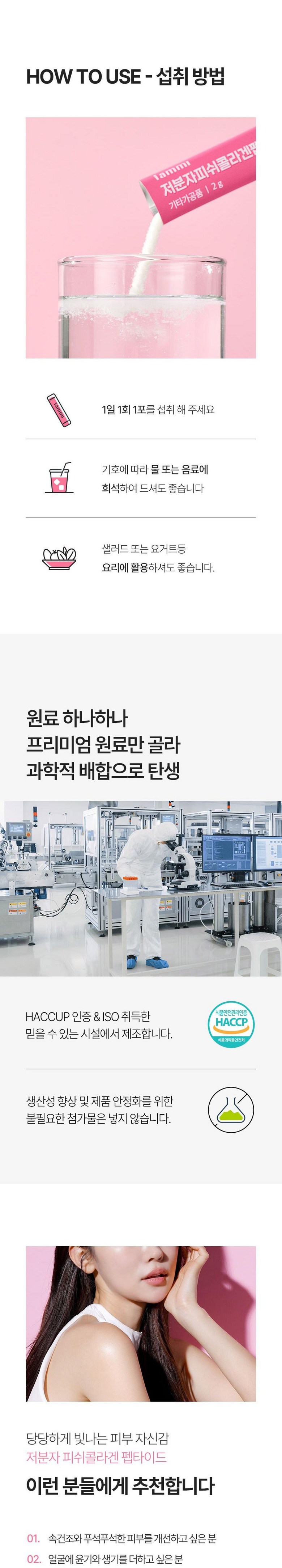 | 식품의 유형 | 저분자 피쉬콜라겐 펩타이드 | 생산자/소재지(수입품의 경우 생산자, 수입자 및 제조국) | 상품 상세페이지 참조 |