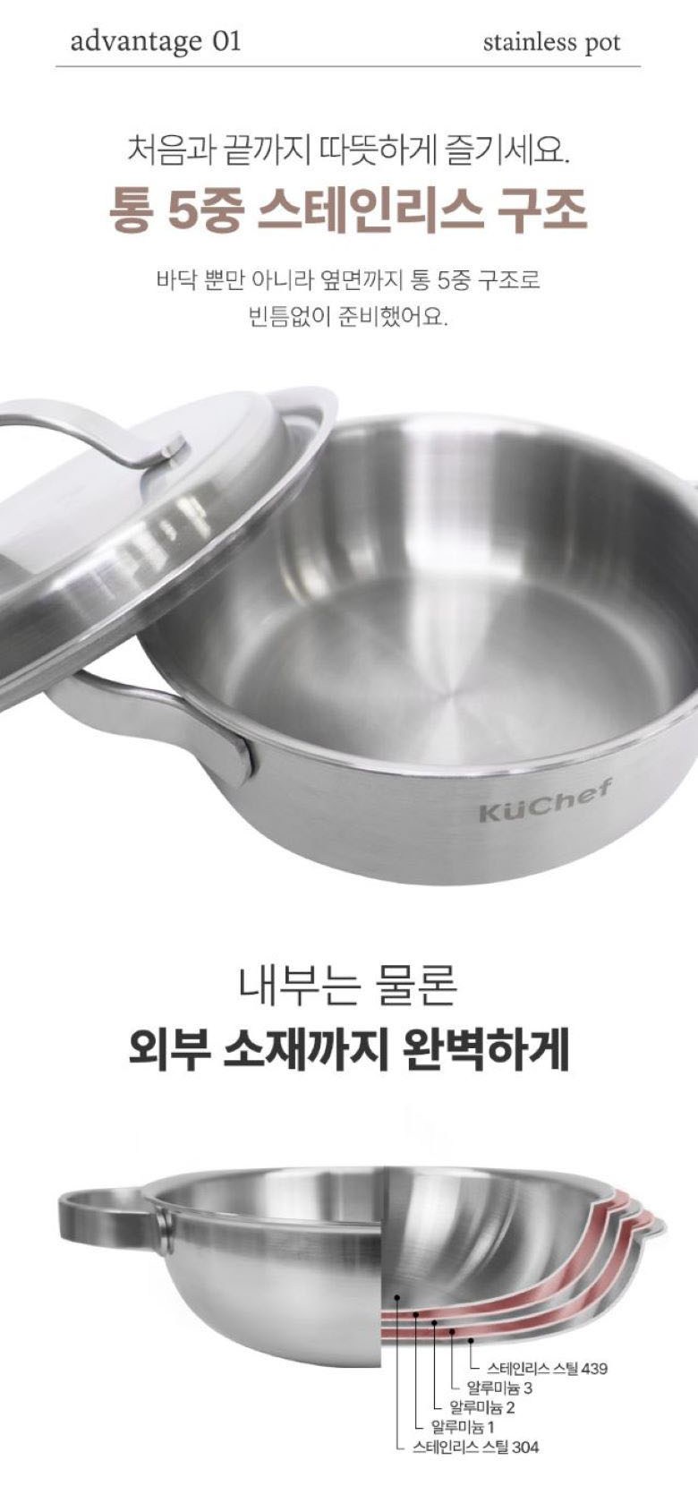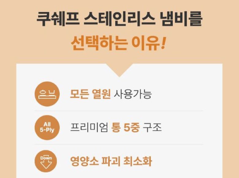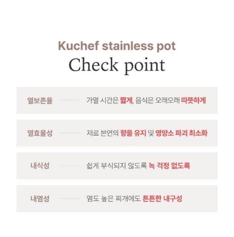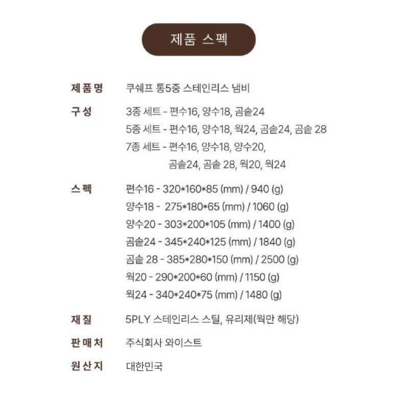 | 품명 및 모델명 | 쿠쉐프 통5중 인덕션용 스텐 냄비 3종 세트 | 재질 | 컨텐츠 참조 |