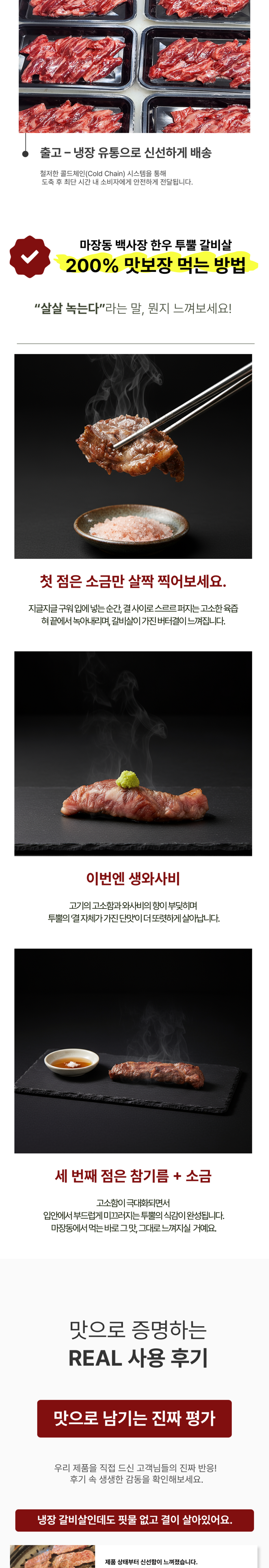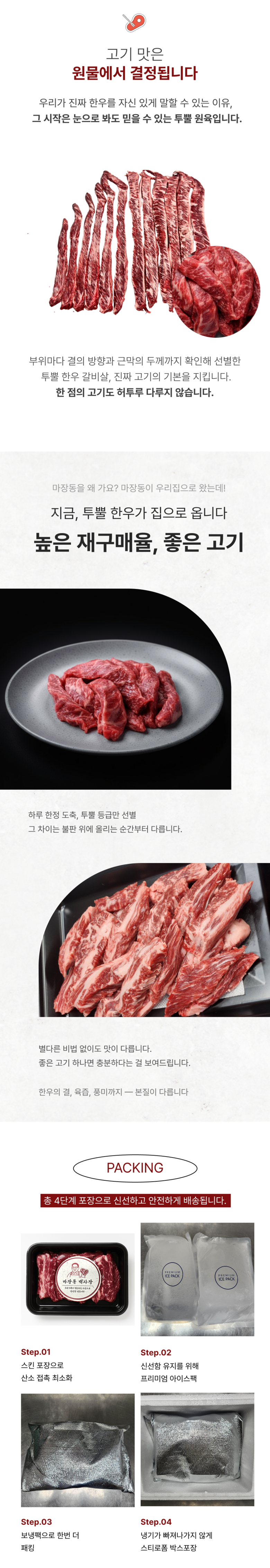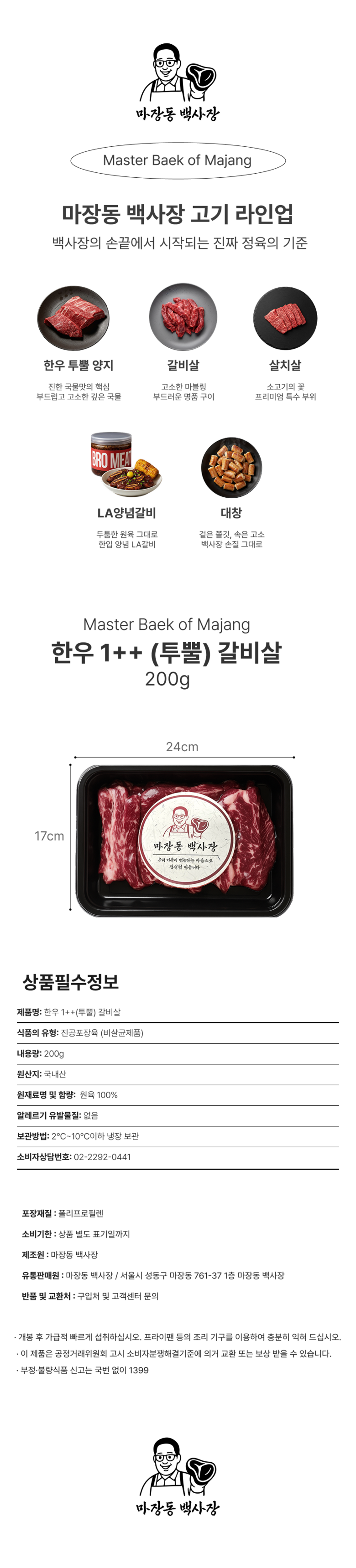 | 품목 또는 명칭 | 구이용 소고기 한우 갈비살 | 포장단위별 내용물의 용량(중량),수량,크기 | 200g |