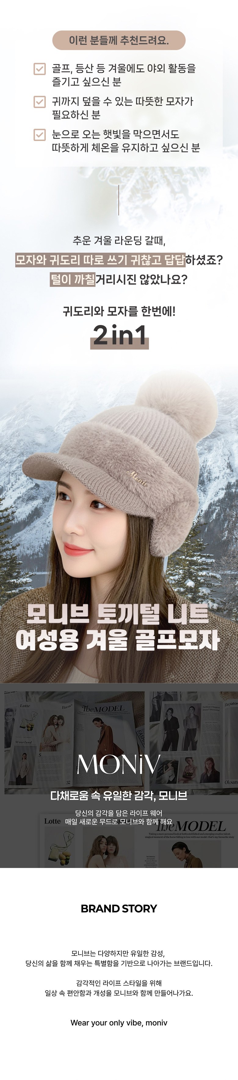 | 종류 | 모니브 겨울여성모자 | 소재 | 상품 상세페이지 참조 |