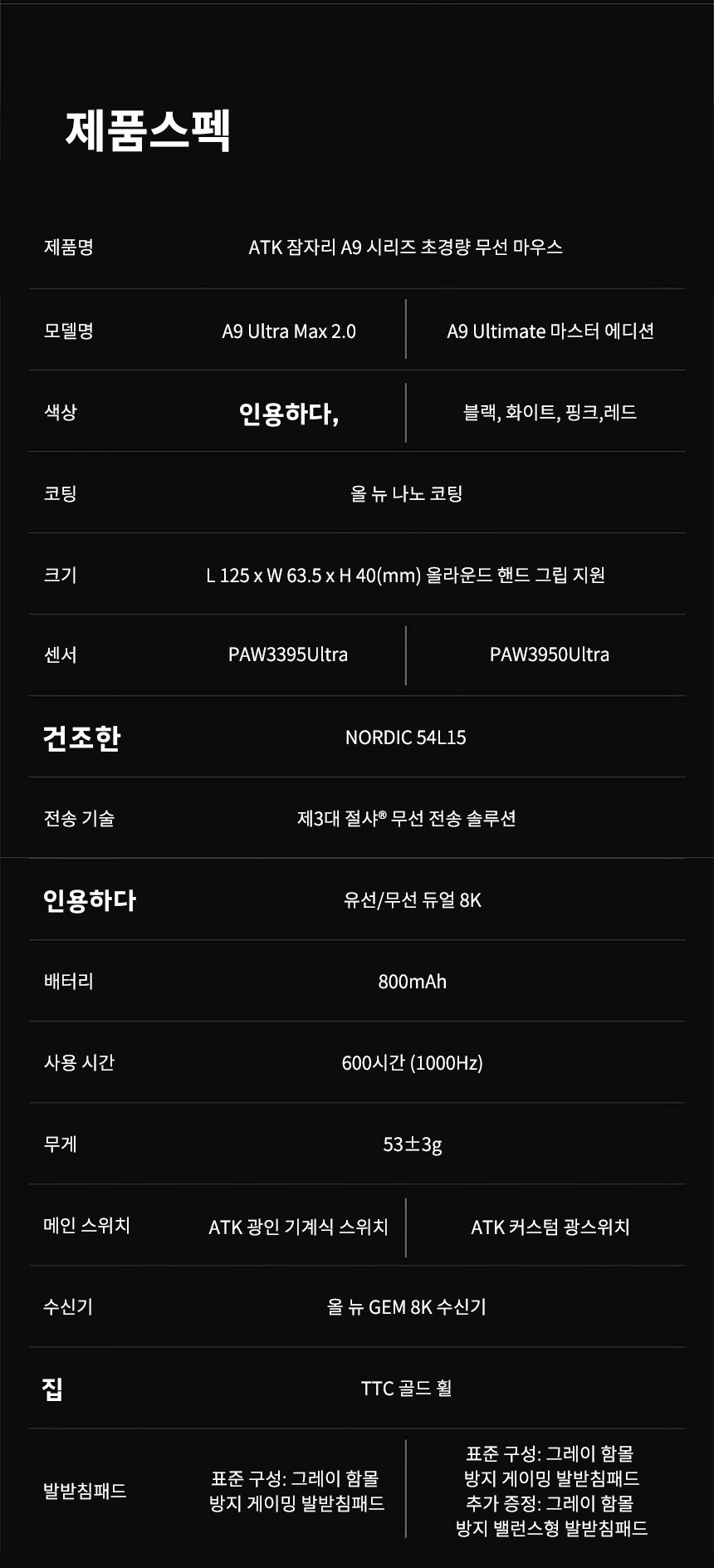 | 품명 및 모델명 | 잠자리 ATK A9 ULTRA MAX 무선 게임 마우스 | KC 인증정보 | 참조 세부 사항 |