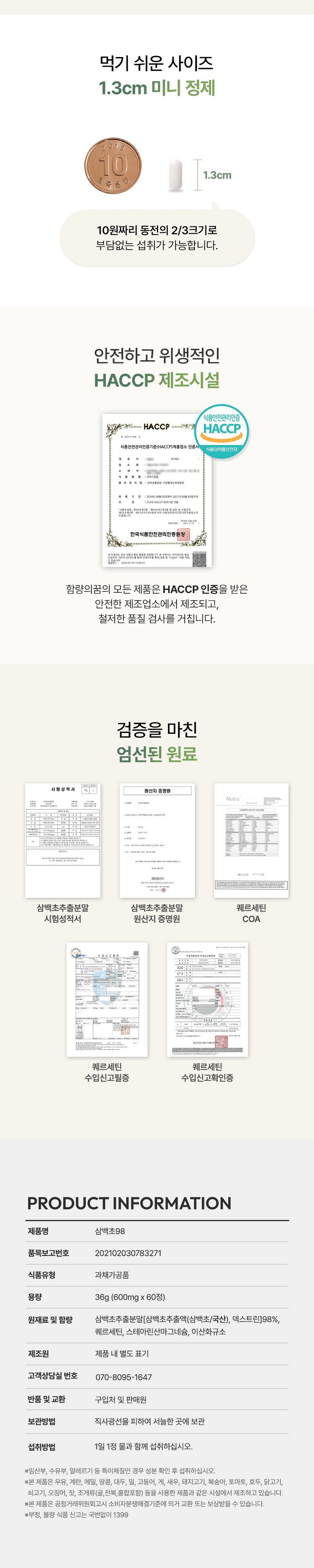 | 포장단위별 내용물의 용량(중량), 수량 | 600mg x 60정 (총 36g) | 원재료명 및 함량 | 상품 상세페이지 참조 |