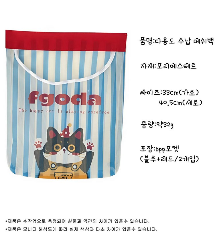 귀여운 고양이 캐릭터가 프린팅되여 있어