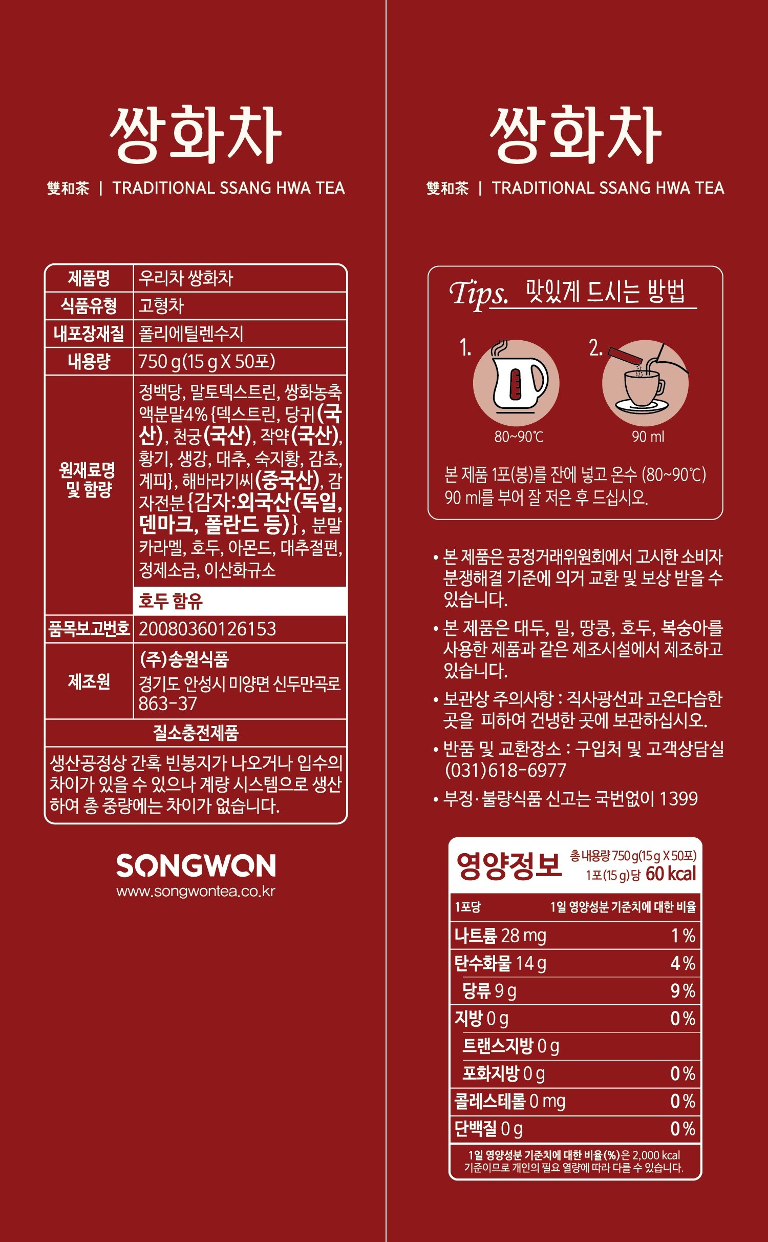 | 제품명 | 우리차 쌍화차 | 식품의 유형 | 고형차 |