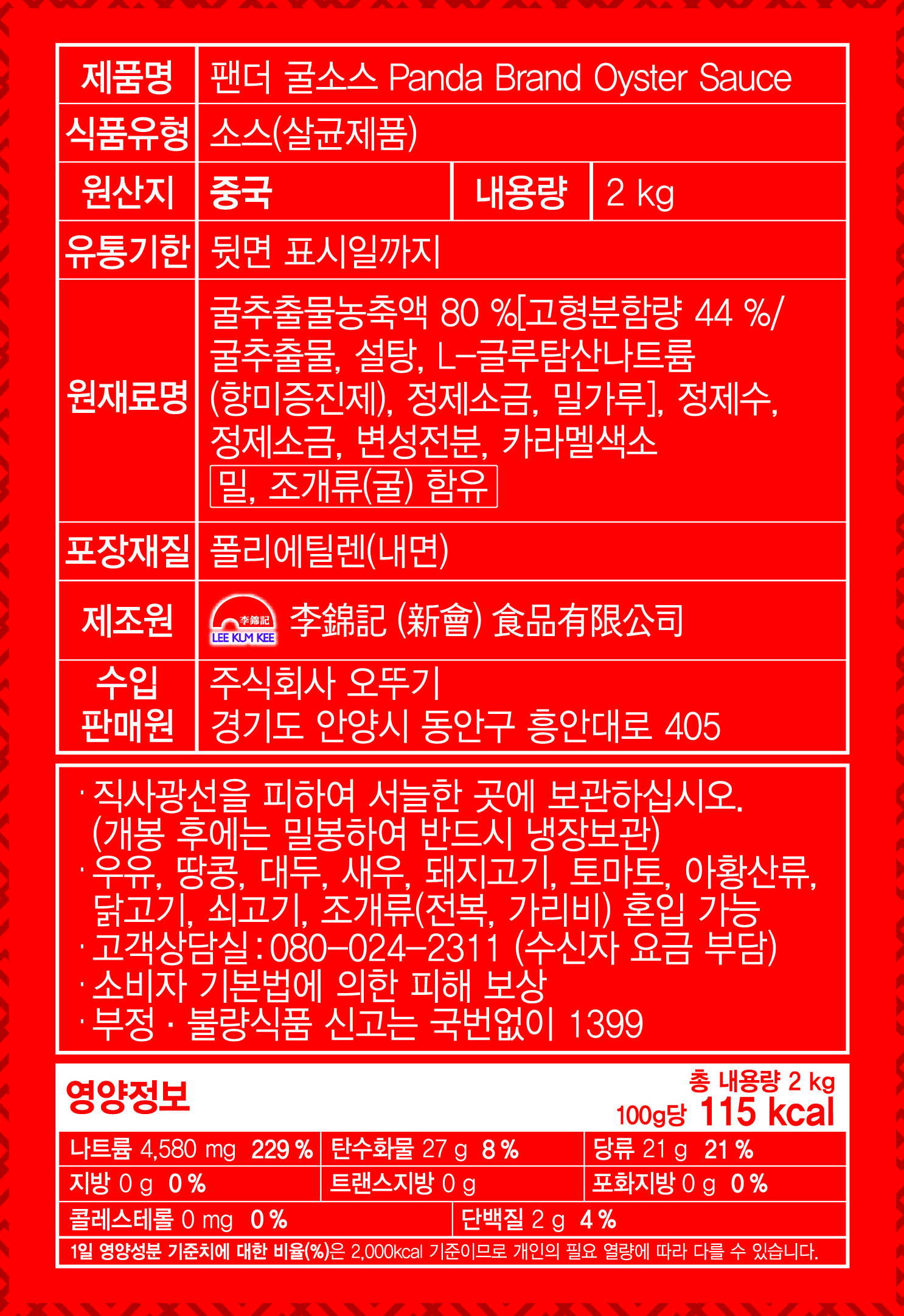 | 제품명 | 팬더 굴소스 | 식품의 유형 | 컨텐츠 참조 |