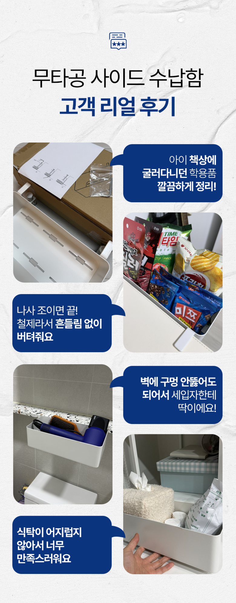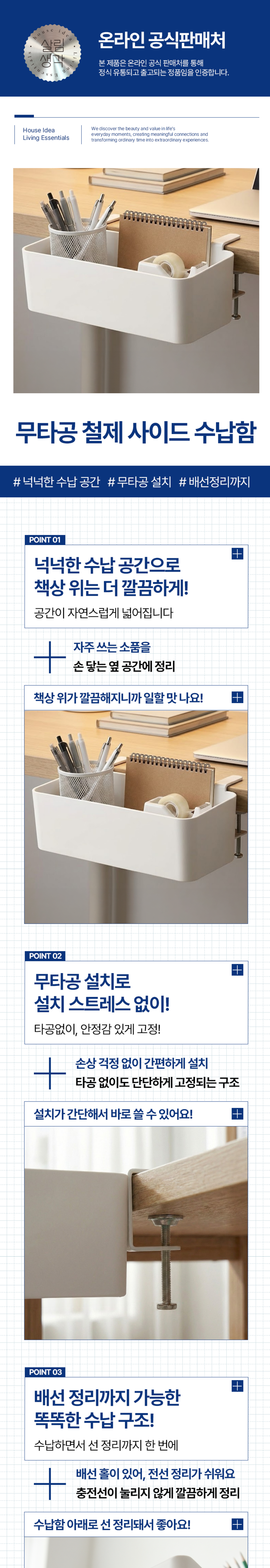 | 품명 및 모델명 | 살림생각 무타공 걸이형 책상 사이드 확장 수납함 | 인증/허가 사항 | 상품 상세페이지 참조 |