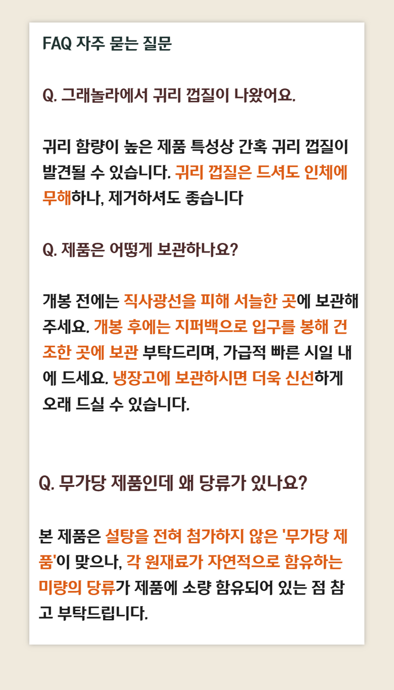 - 상품문의 및 후기게시판을 통해 취소나 환불, 반품 등은 처리되지 않습니다.