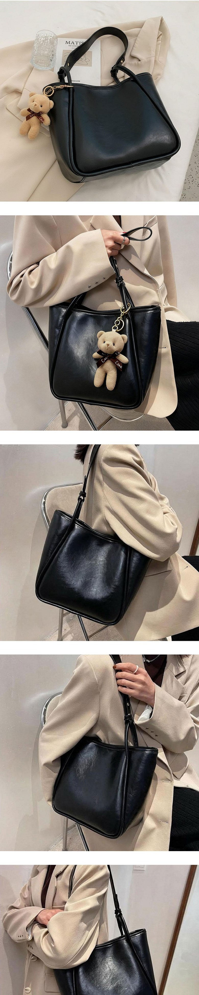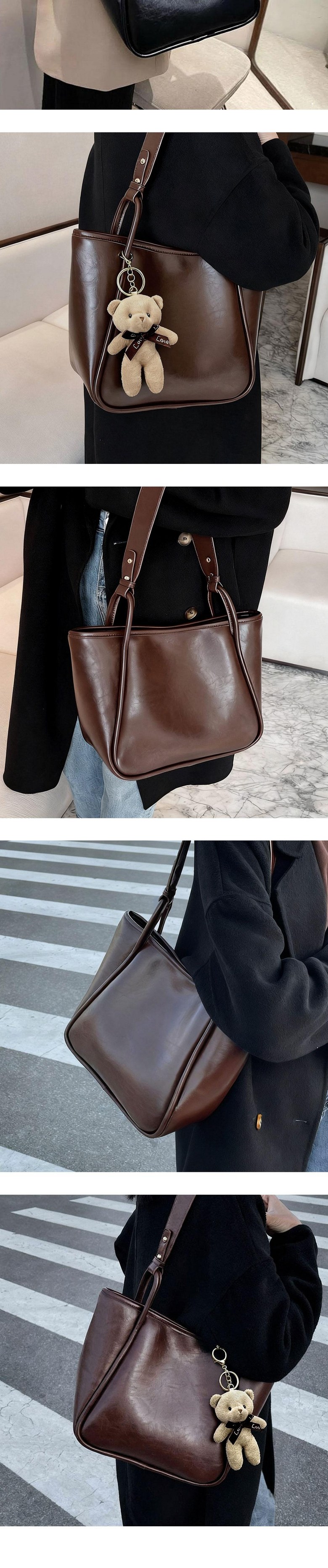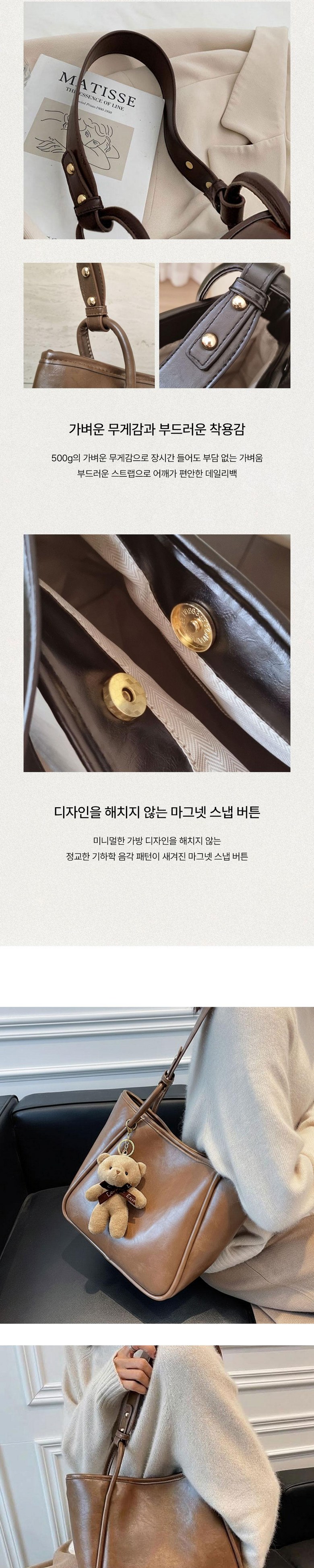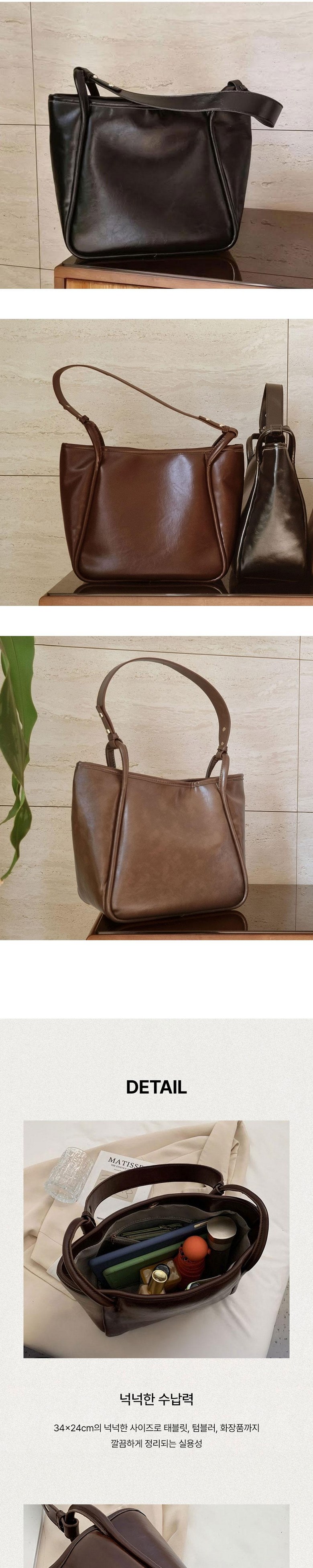 여성 출근 가방 데일리 빈티지 소프트 가죽 쇼퍼백 숄더백 보부상 가방 키링증정