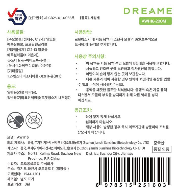 | 출시년월 | 2025.08 | 제조자(수입자) | Dreame Trading(Tianjin) Co.,Ltd. / 코오롱글로벌 주식회사 |