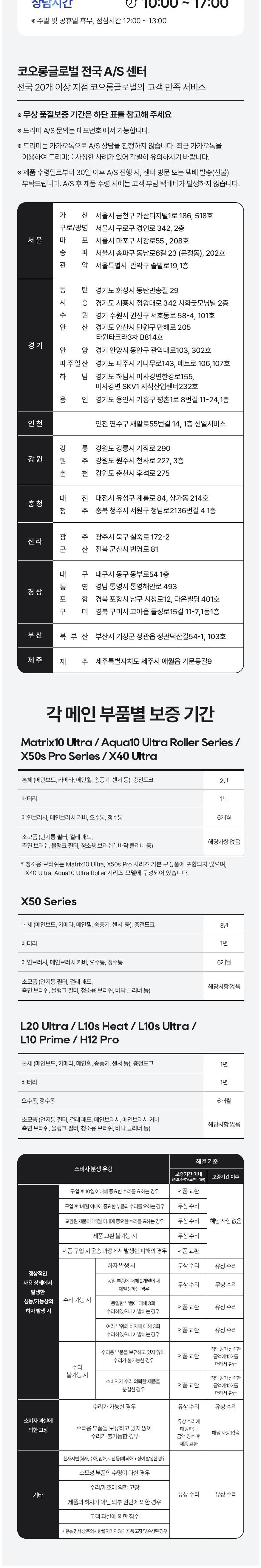- ㆍ제조사의 사정 (신모델 출시 등) 및 부품 가격 변동 등에 의해 무료 교환/반품으로 요청하는 경우