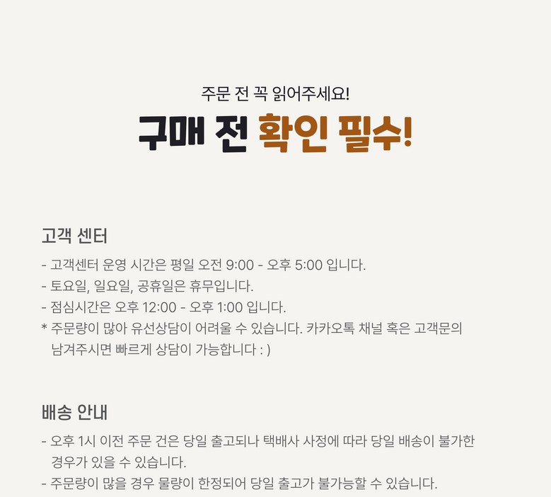 - 상품문의 및 후기게시판을 통해 취소나 환불, 반품 등은 처리되지 않습니다.