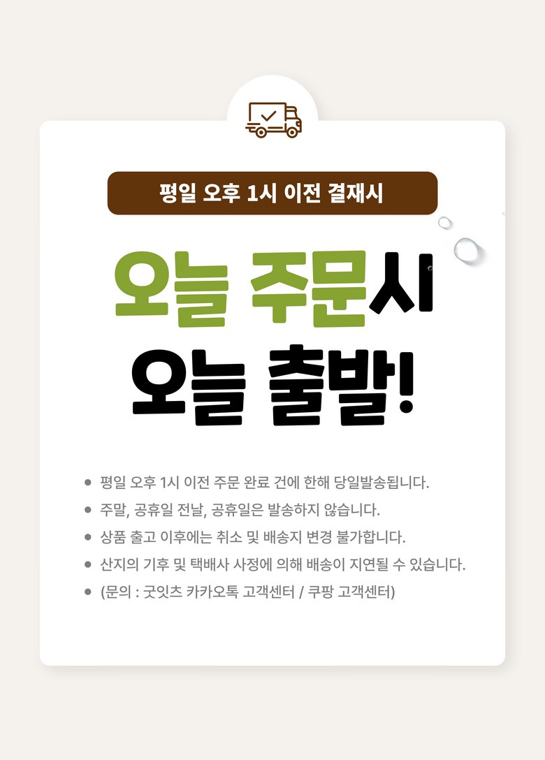 | 배송방법 | 신선/냉장/냉동 | 배송비 | 무료배송 - 도서산간 지역 배송불가 |