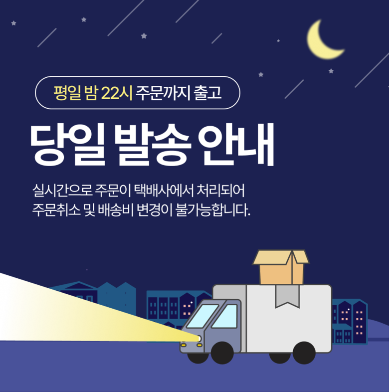 | 배송기간 | ㆍ도서산간 지역 등은 배송에 3-5일이 더 소요될 수 있습니다. - 천재지변, 물량 수급 변동 등 예외적인 사유 발생 시, 다소 지연될 수 있는 점 양해 부탁드립니다. | ||