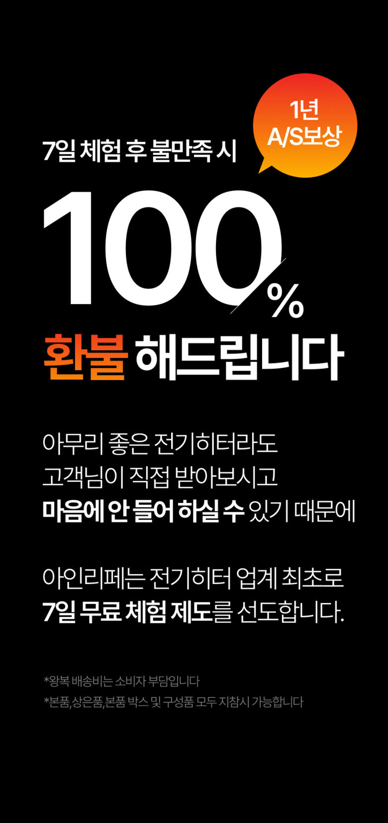 - ㆍ모니터 해상도의 차이로 인해 색상이나 이미지가 실제와 달라, 고객이 단순 변심으로 교환/반품을 무료로 요청하는 경우
