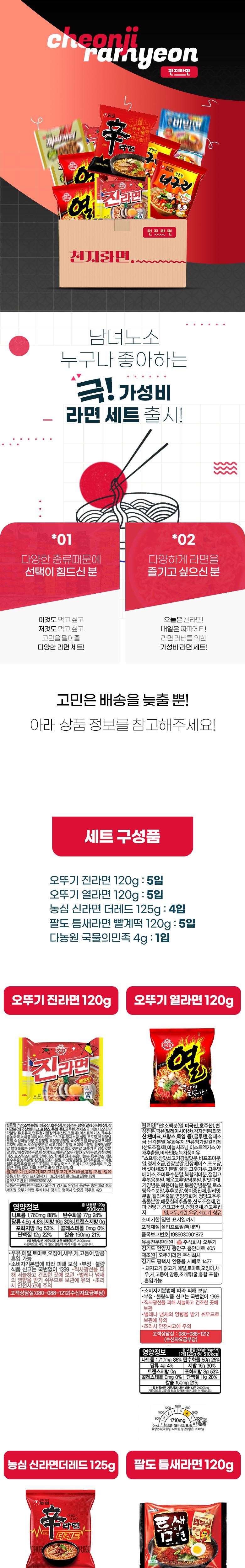 | 제품명 | 천지라면 봉지라면 4종 19개 | 식품의 유형 | 봉지라면 |