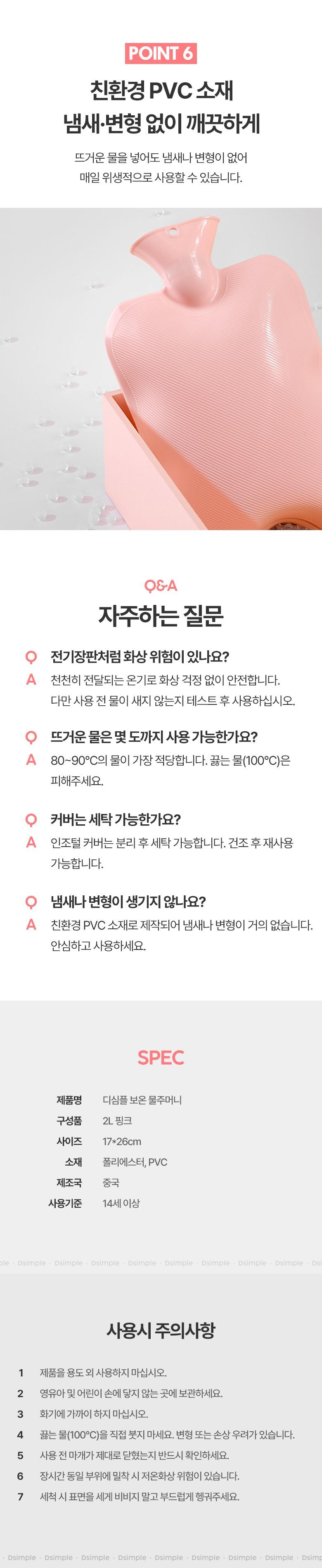 | 품명 및 모델명 | SE143 디심플 보온물주머니 | 인증/허가 사항 | 해당 사항 없음 |