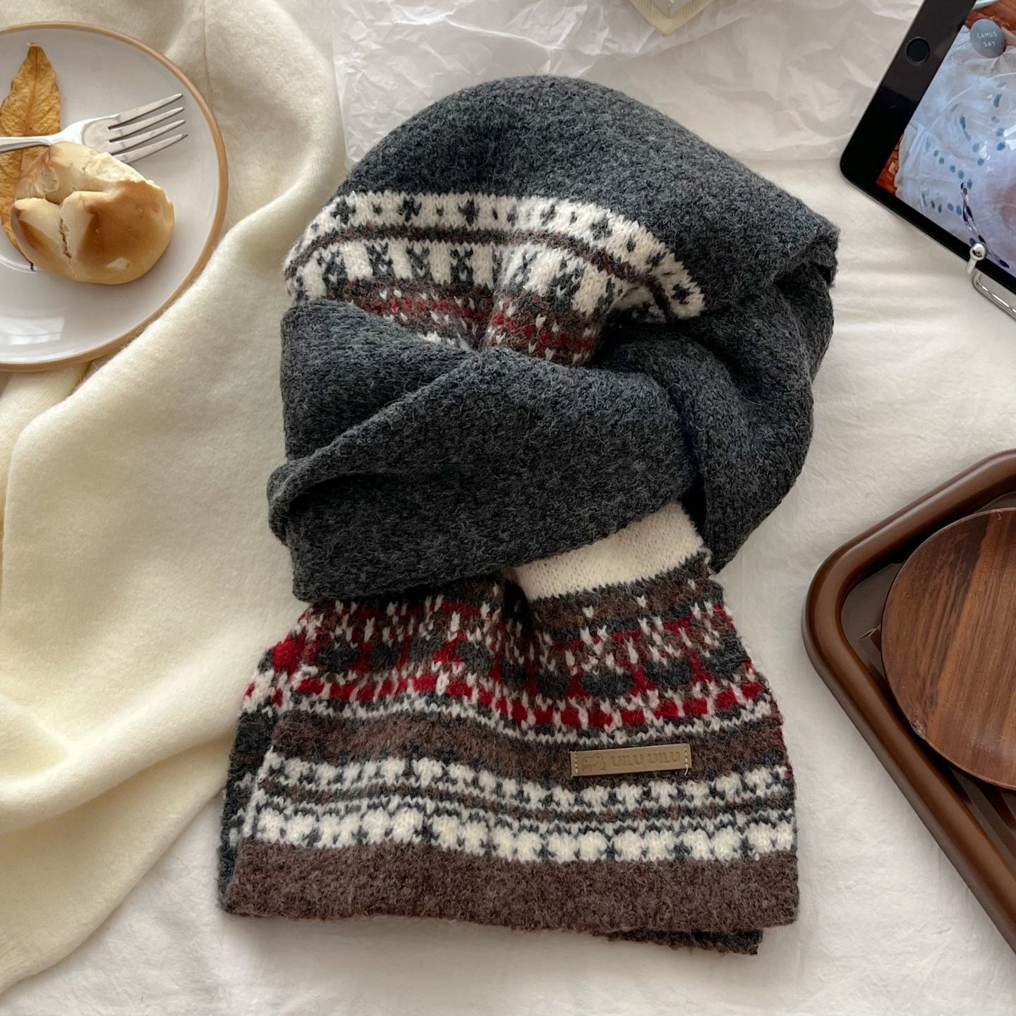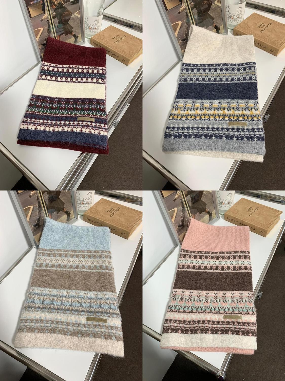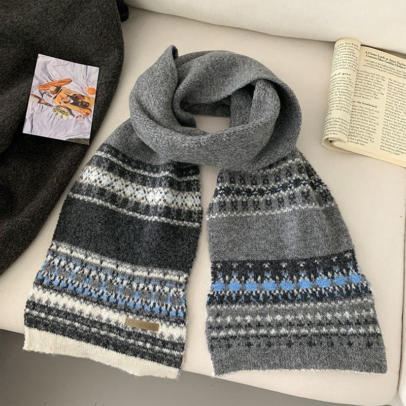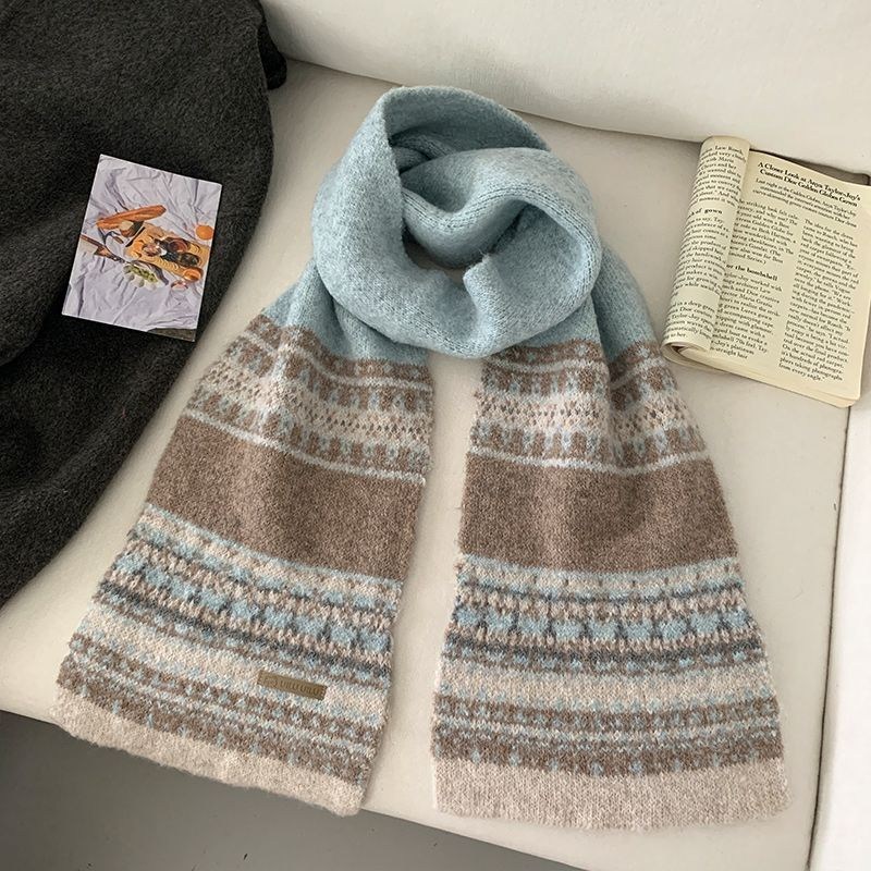 투니스 빈티지 배색 보온 니트 목도리