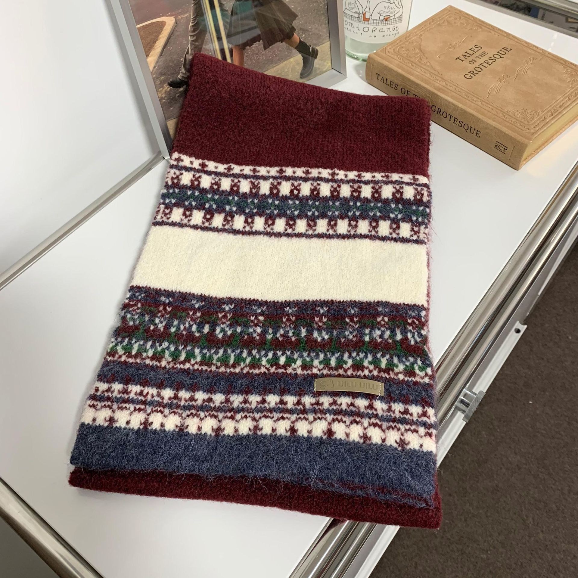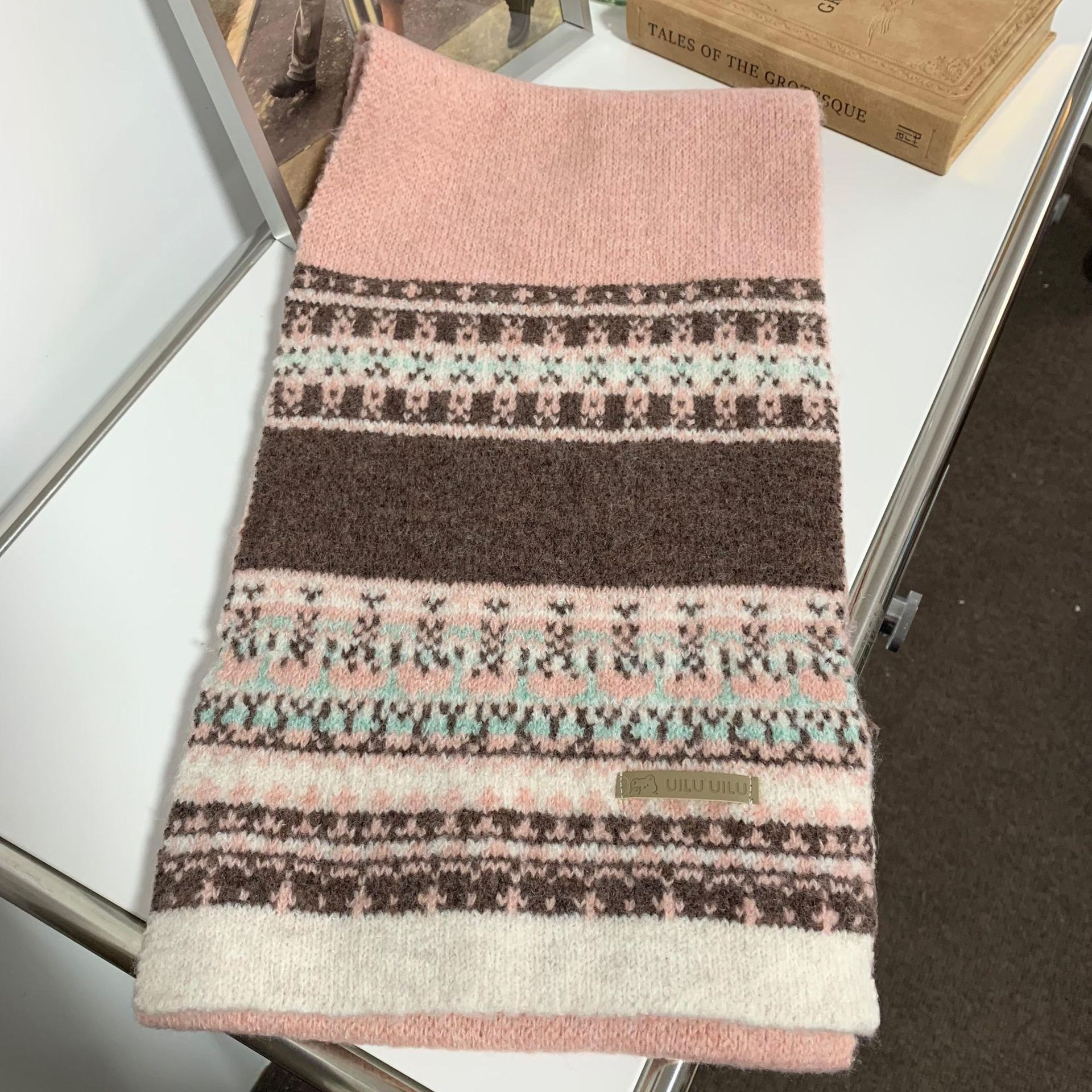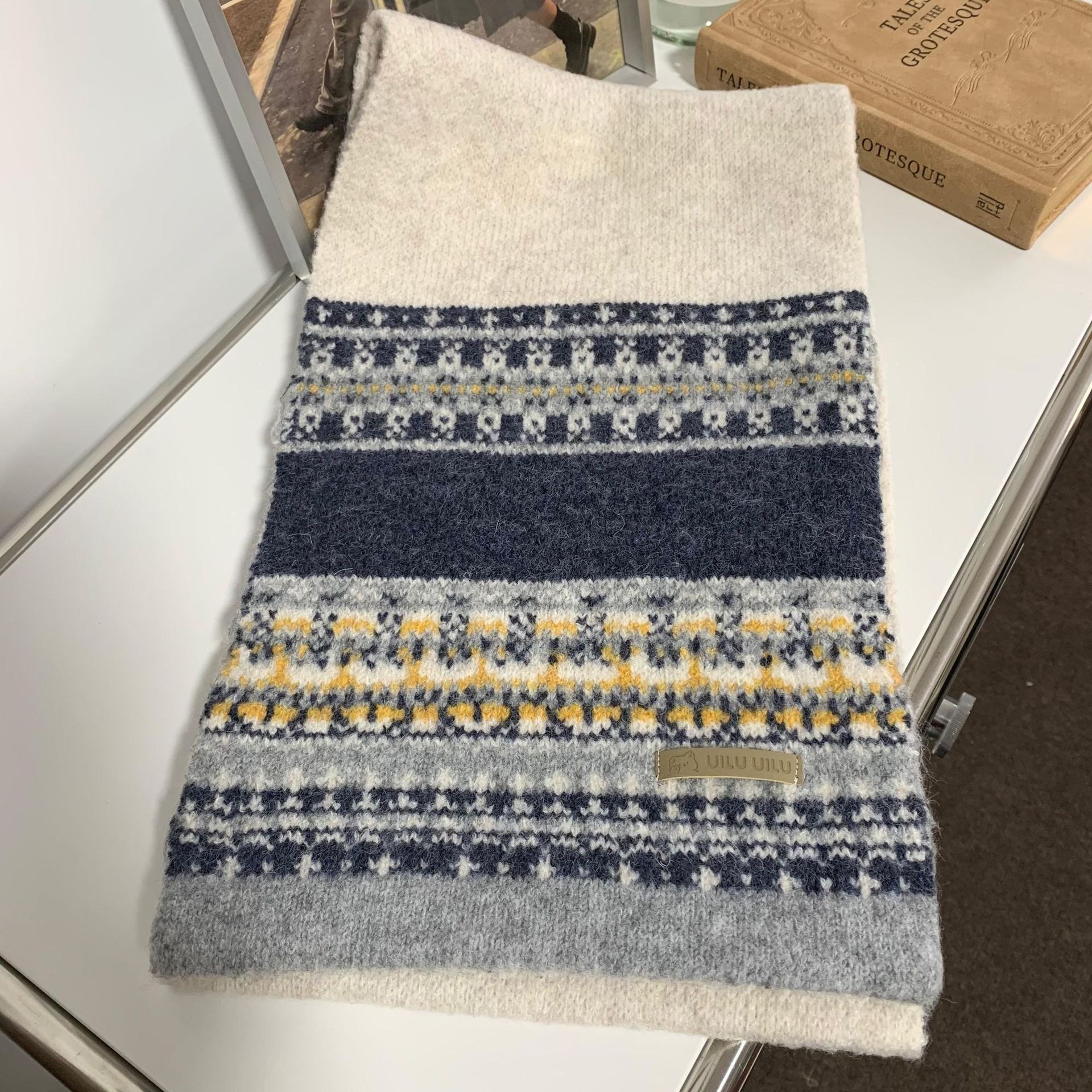 투니스 빈티지 배색 보온 니트 목도리