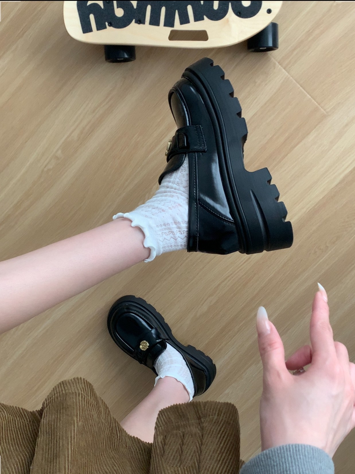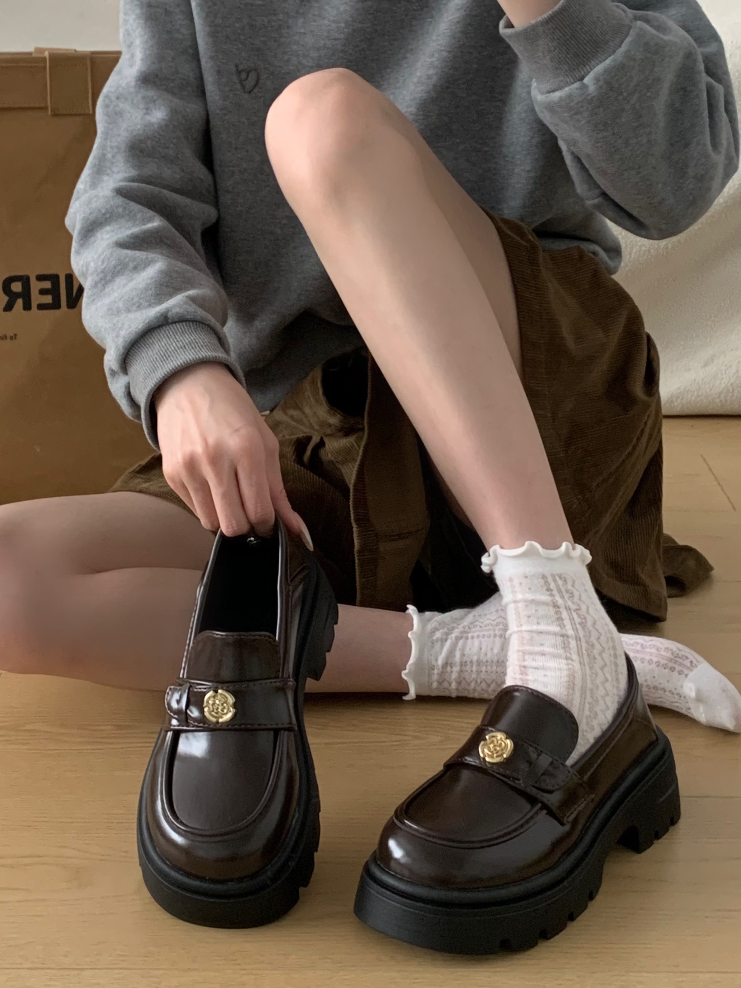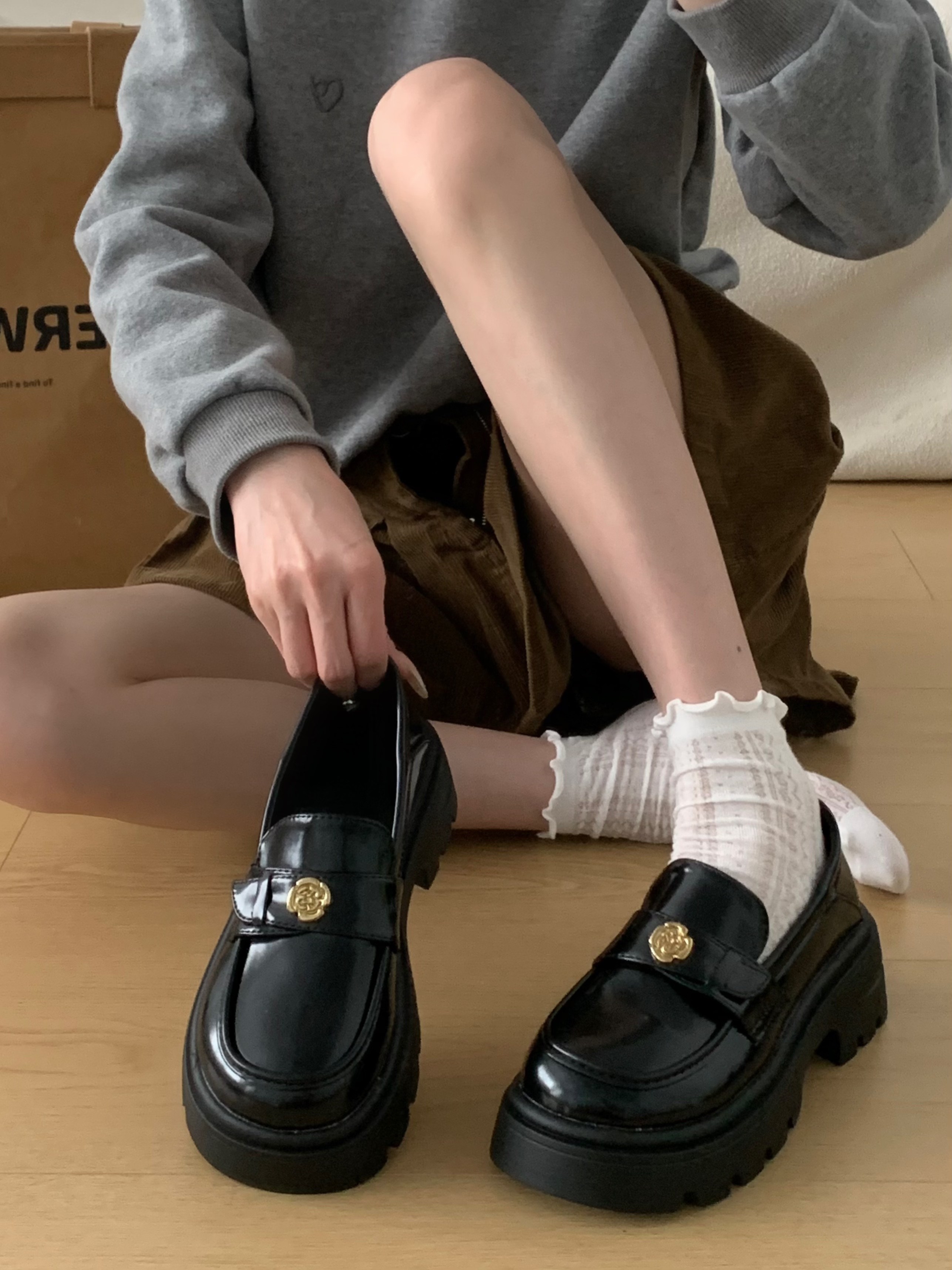 투니스 여성 스타일리시 캐주얼 단색 통굽 구두 5cm