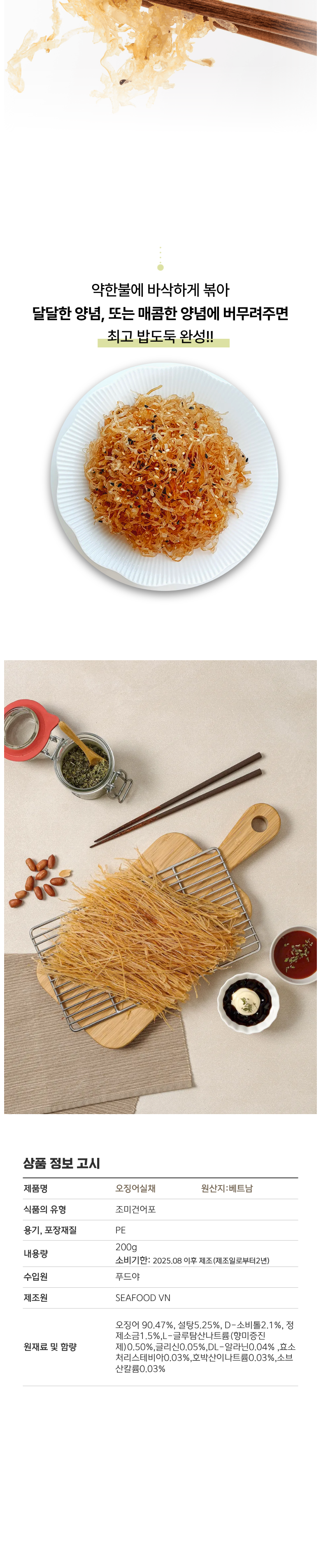 | 제품명 | 오징어실채 | 식품의 유형 | 조미건어포 |