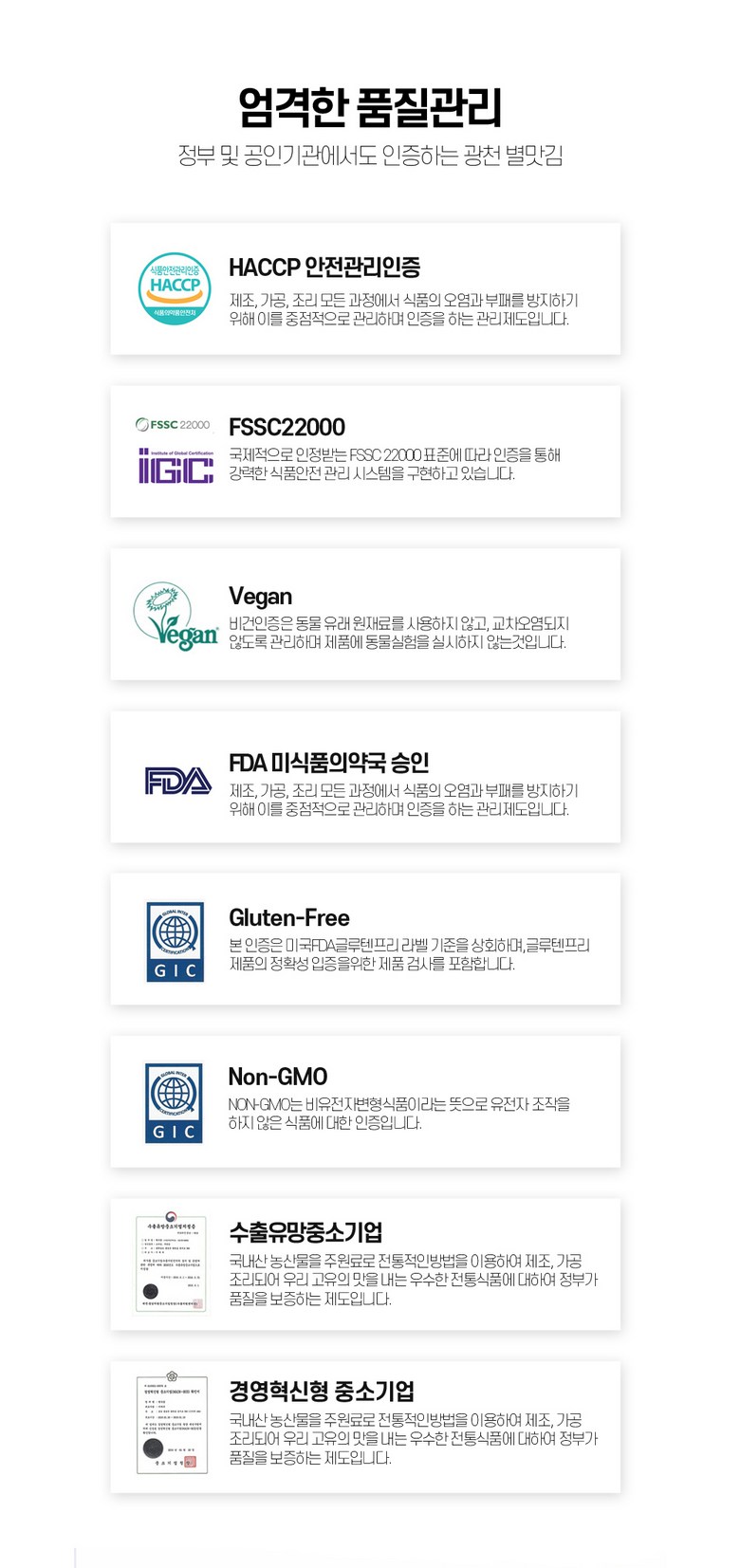 | 생산자 및 소재지 | 상품 상세페이지 참조 | 제조연월일, 소비기한 또는 품질유지기한 | 상품 상세페이지 참조 |