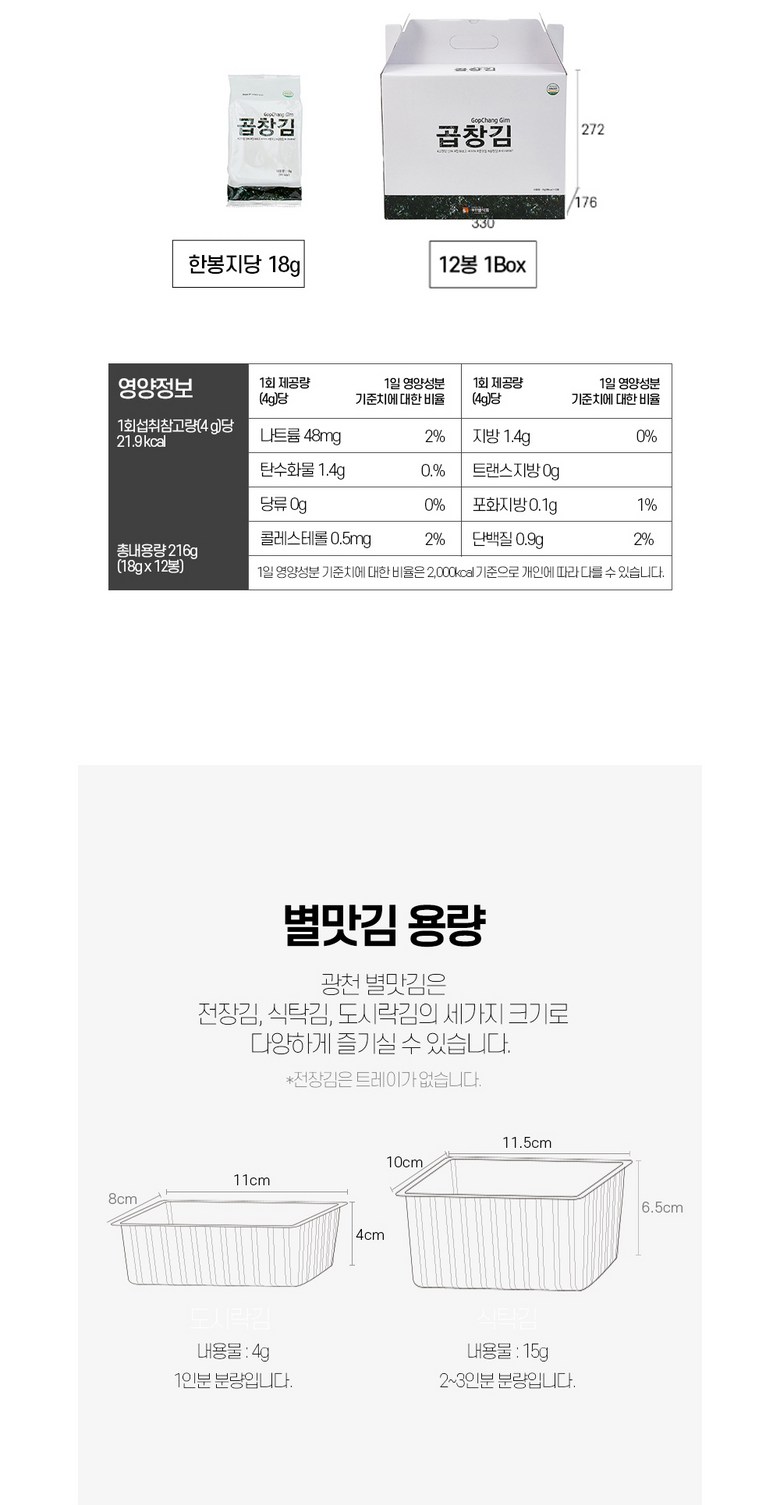| 포장단위별 내용물의 용량(중량), 수량 | 상품 상세페이지 참조 | 원재료명 및 함량 | 상품 상세페이지 참조 |