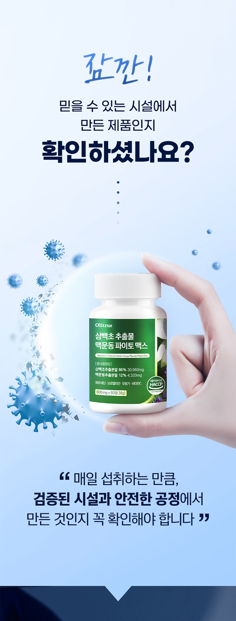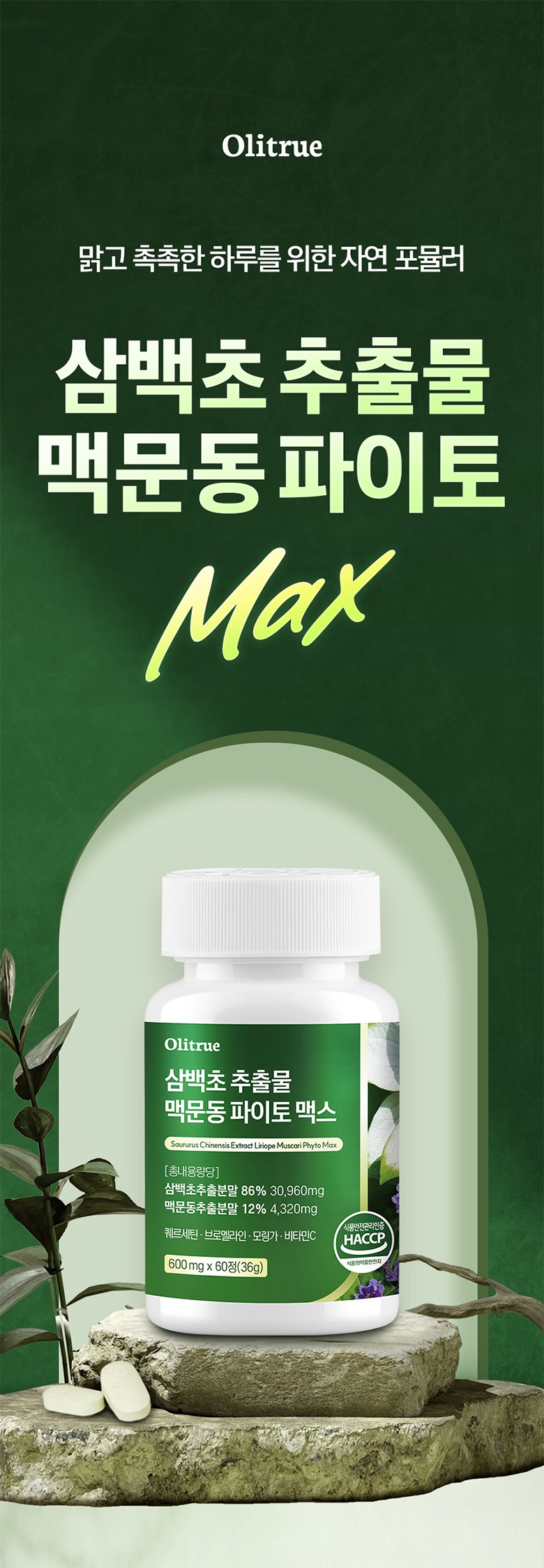 | 제품명 | 올리트루 삼백초 추출물 맥문동 파이토 맥스 | 제조업소의 명칭과 소재지 | 올리트루 협력사 |