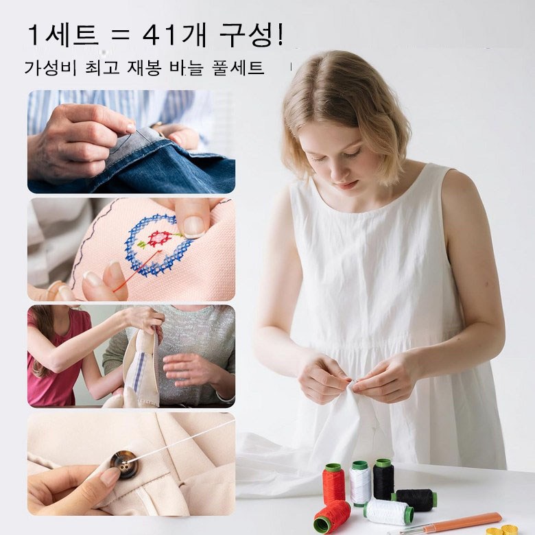 1세트=41개 의류재사용바늘세트 실 강철 바늘 세트 가정용 큰 바늘 구멍 재봉 도구 세트 가성비 36종 세트 가정용 실끼우개 셋트 사은품 랜덤 증정