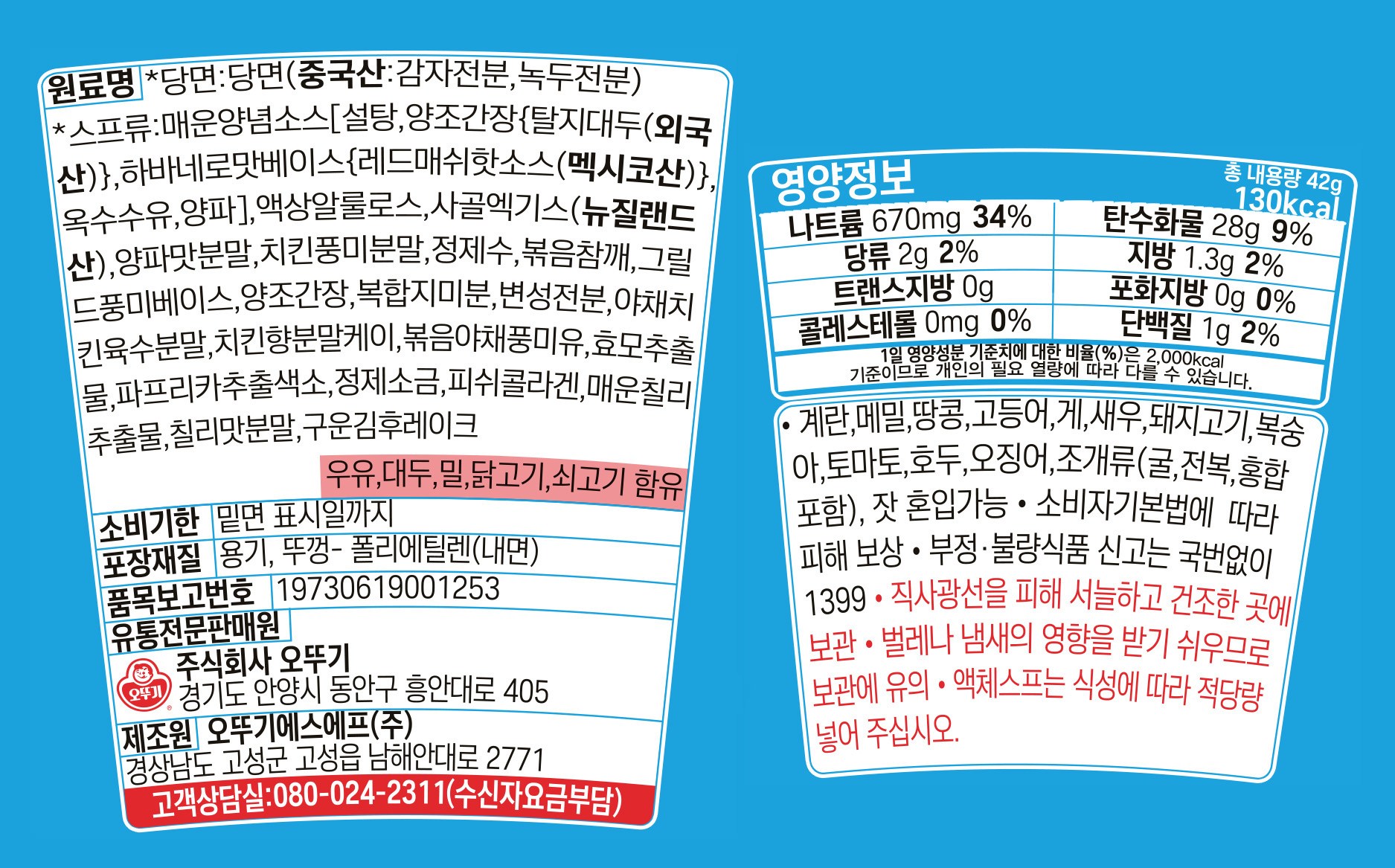 | 제품명 | LIGHT&JOY 저당 컵누들 불닭맛 | 식품의 유형 | 건면 |