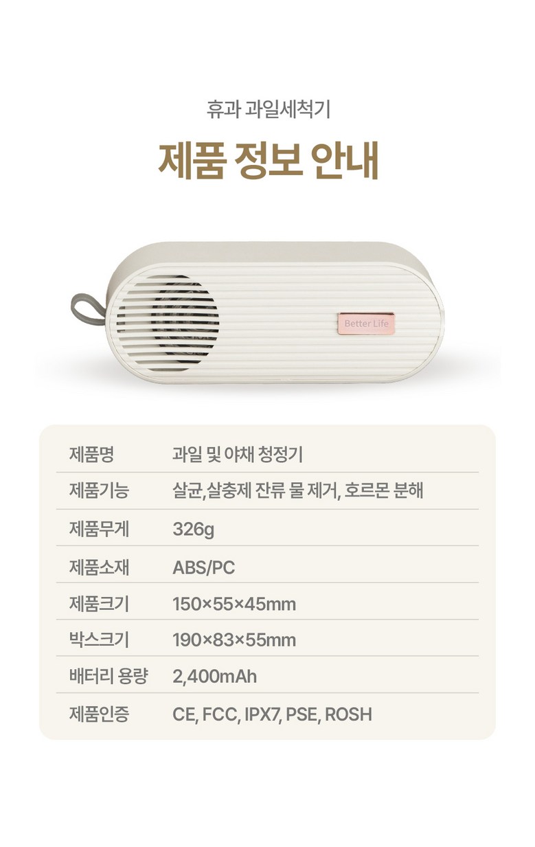 휴과 과일세척기 무선 야채 과일 안심 세척기
