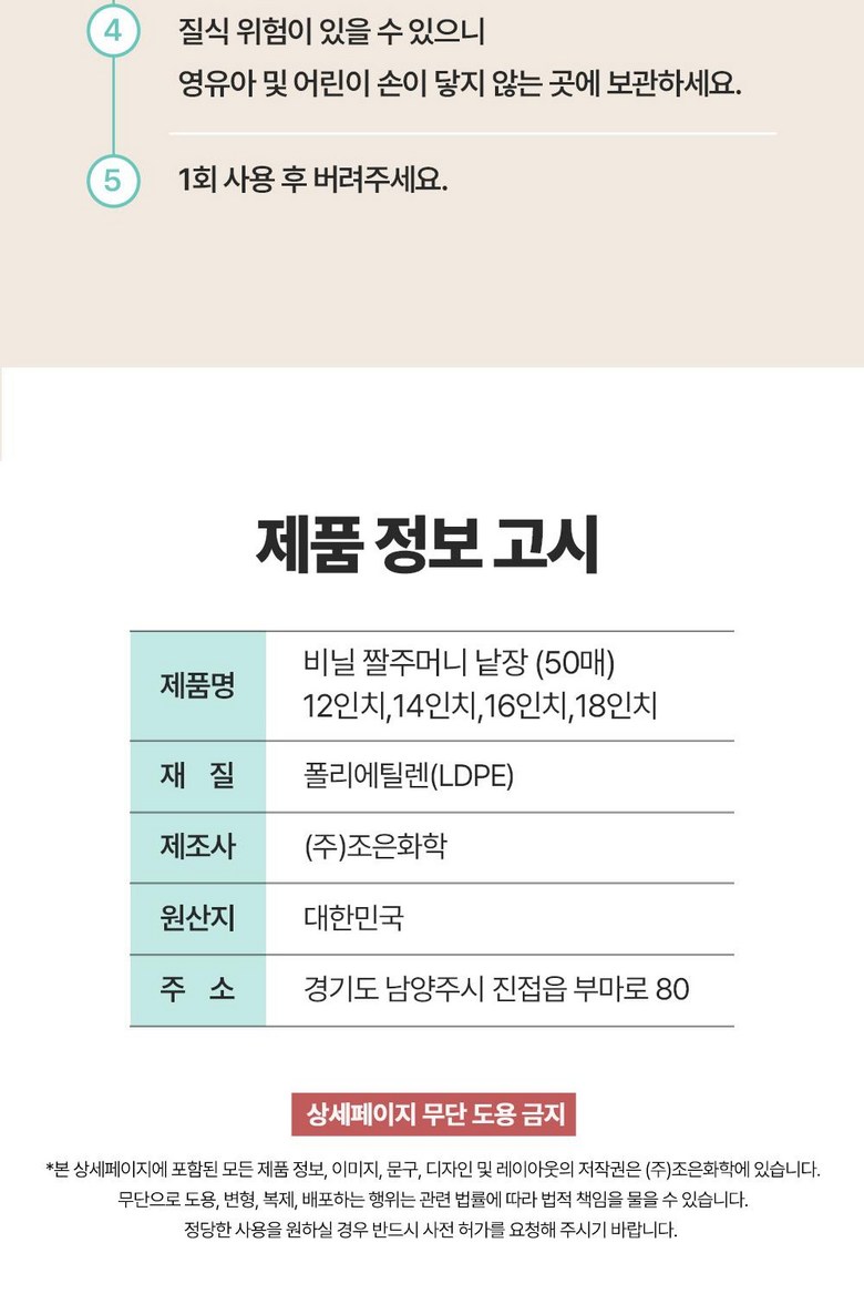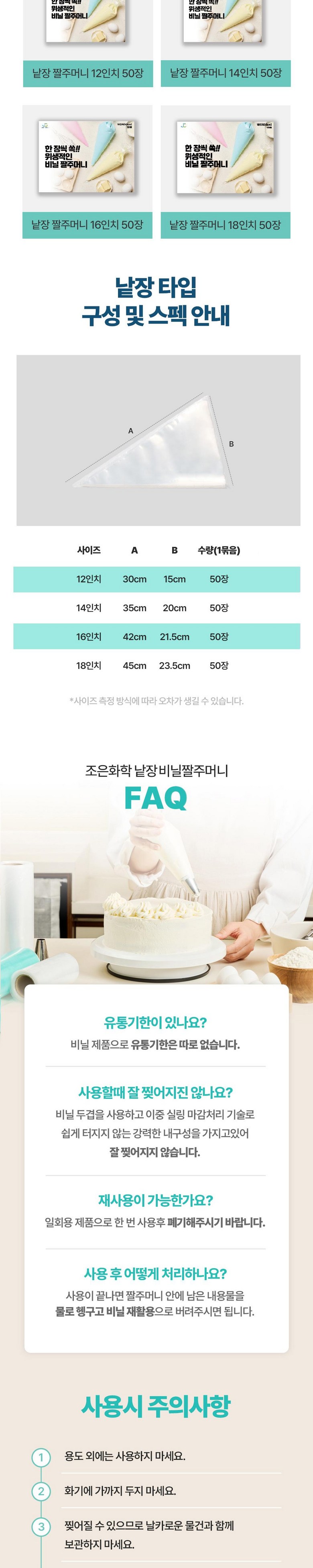 [국내제조] 한 장씩 쏙!! 위생적인 비닐 짤주머니 (4가지 사이즈- 50장 1팩), 12인치, 50개