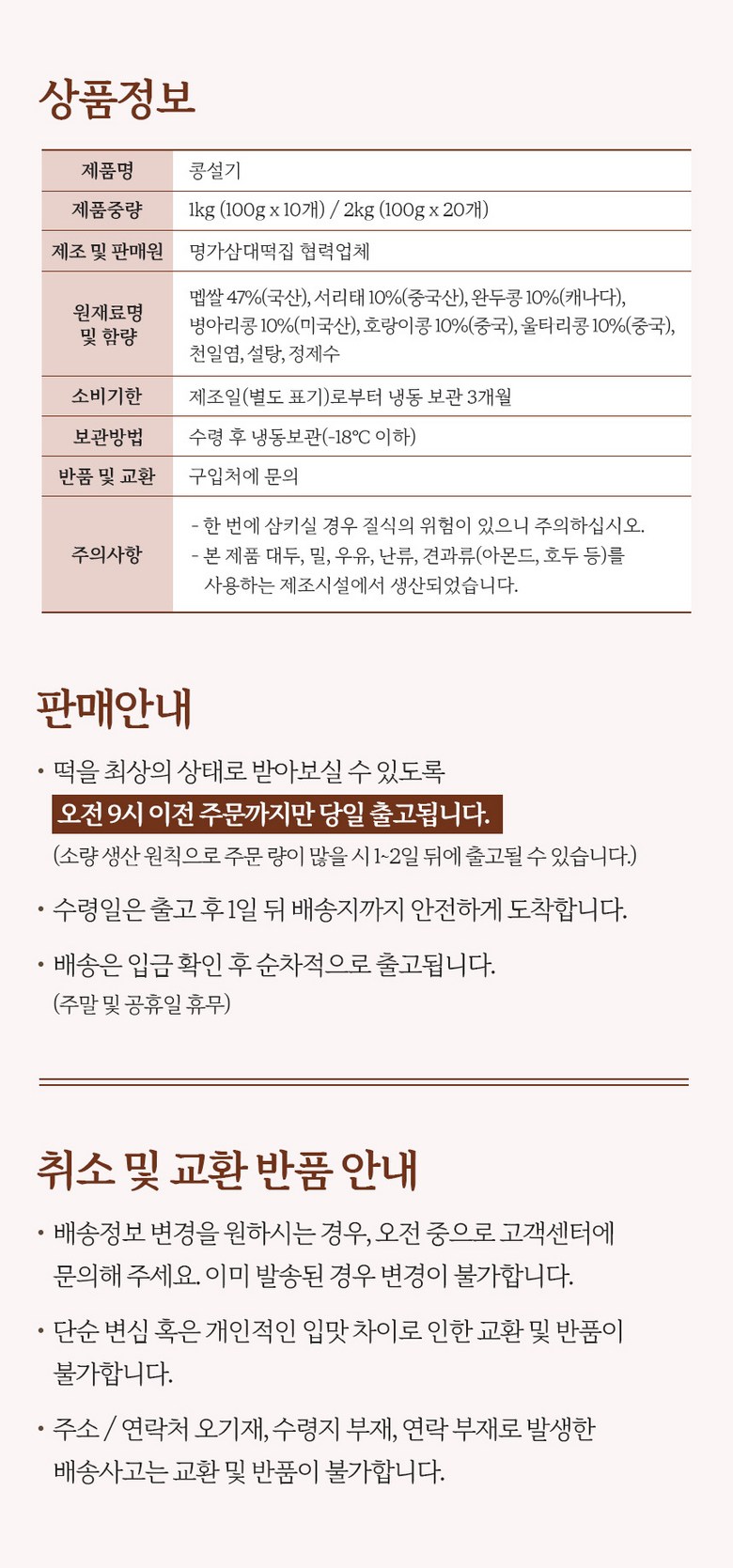 | 제품명 | 콩설기 | 식품의 유형 | 떡류 |