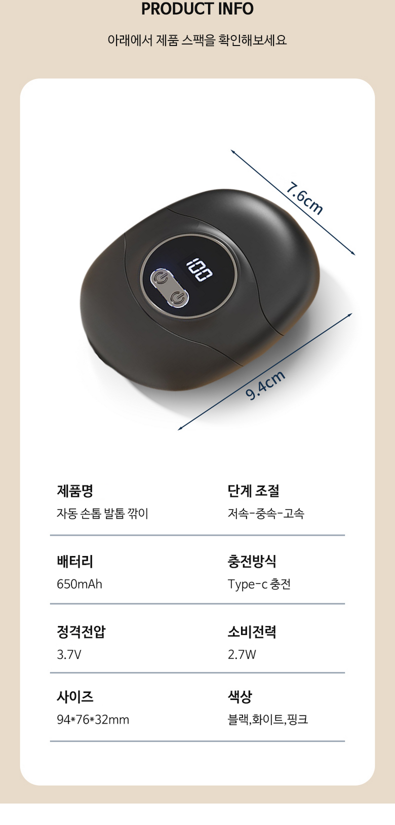 | 품명 및 모델명 | AOSS 무선 2in1 자동 손발톱 깎 발각질제거기 C타입 충전식 휴대용 | KC 인증정보 | 상품 상세페이지 참조 |