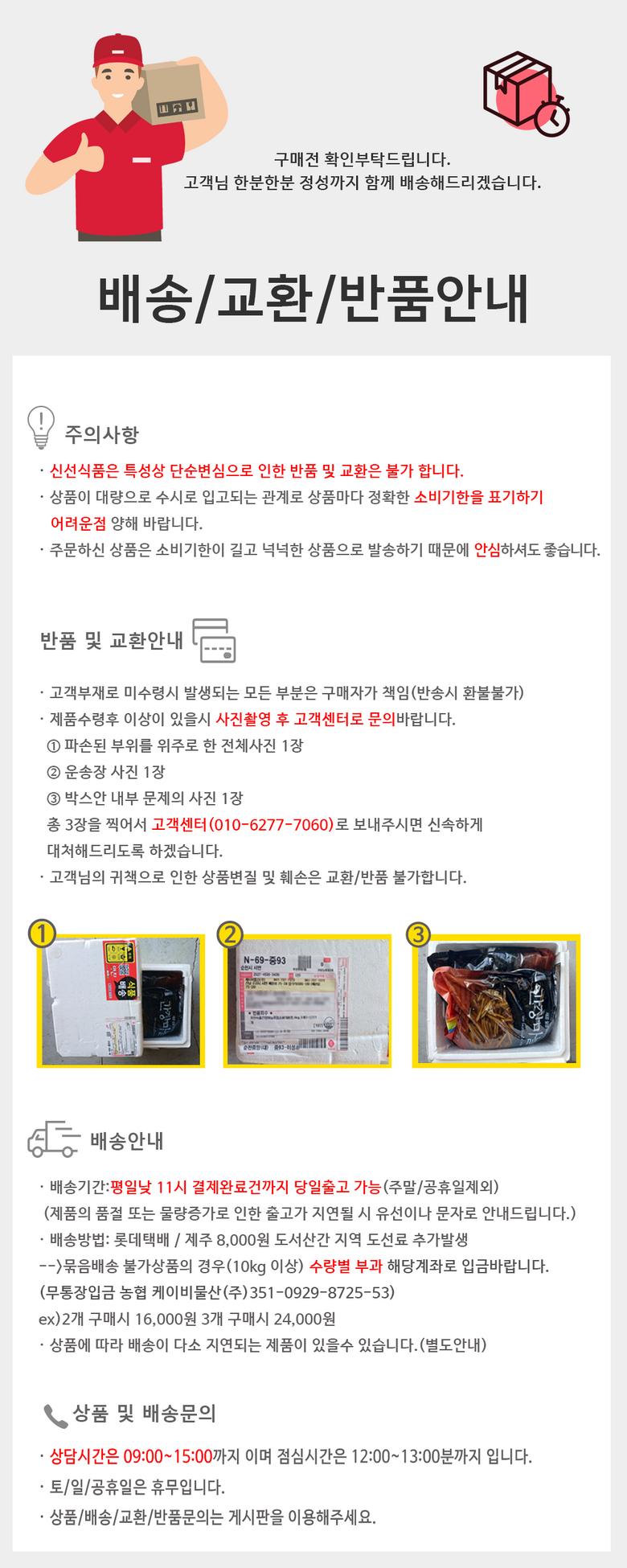 - ㆍ교환/반품에 관한 일반적인 사항은 판매자가 제시사항보다 관계법령이 우선합니다.