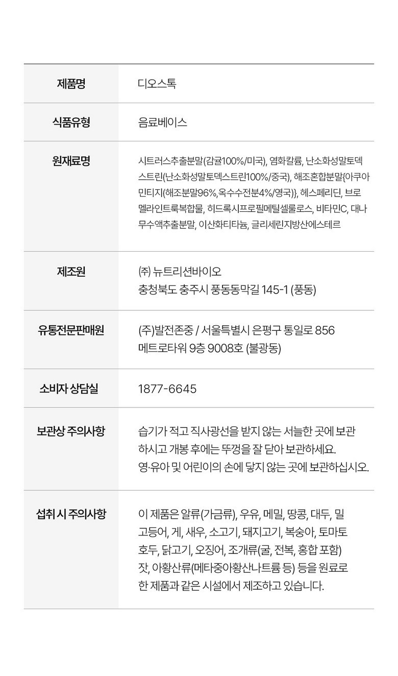 | 제조연월일, 소비기한 또는 품질유지기한 | 상품 상세페이지 참조 | 세부 품목군별 표시사항 | 상품 상세페이지 참조 |