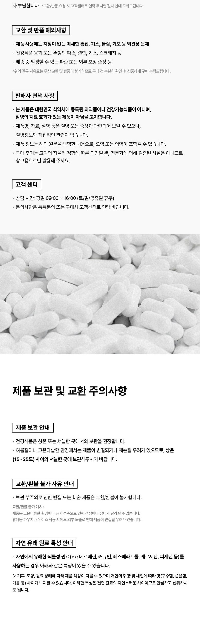 - 가격, 판매자, 교환/환불 및 배송 등 해당 상품 자체와 관련 없는 문의는 고객센터 내 1:1 문의하기를 이용해주세요.